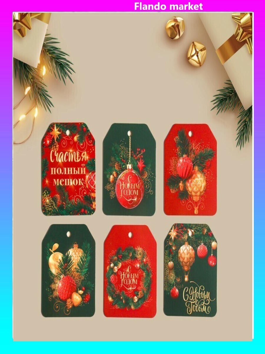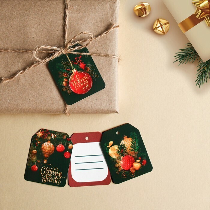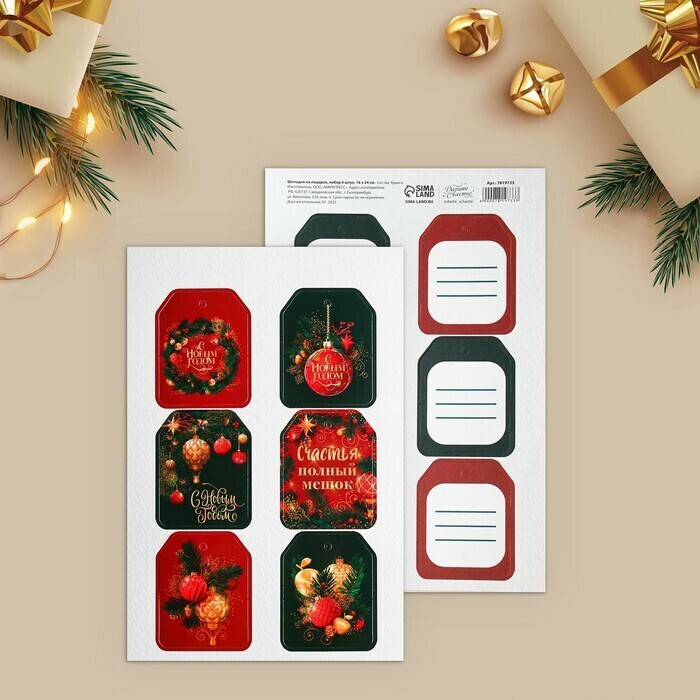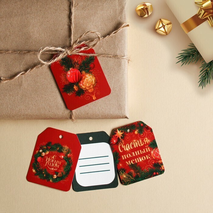 !09 Шильдик на подарок (набор 12 штук) «Счастье», ёлочные шары, 16 × 24 см