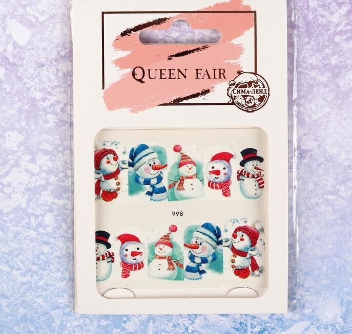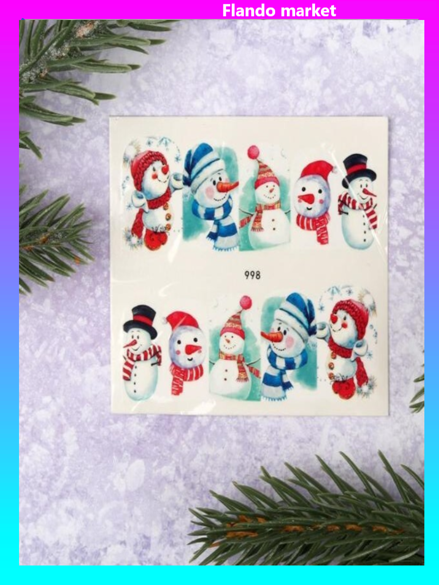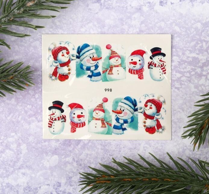 !09 Слайдер-дизайн для ногтей «Снеговики», водный
