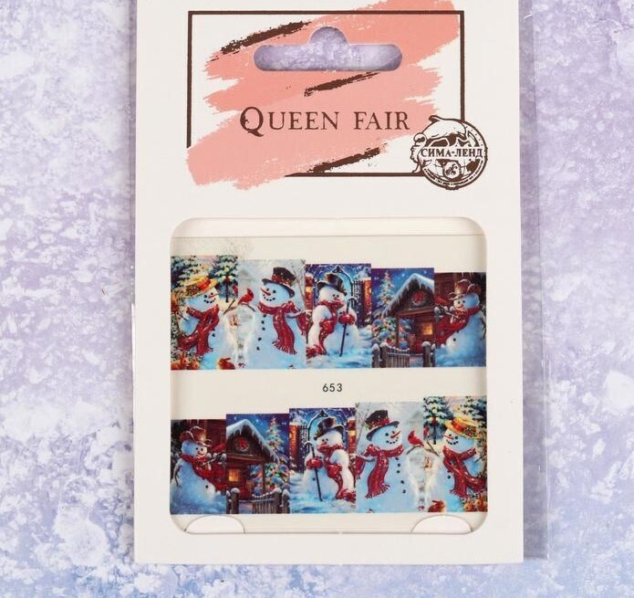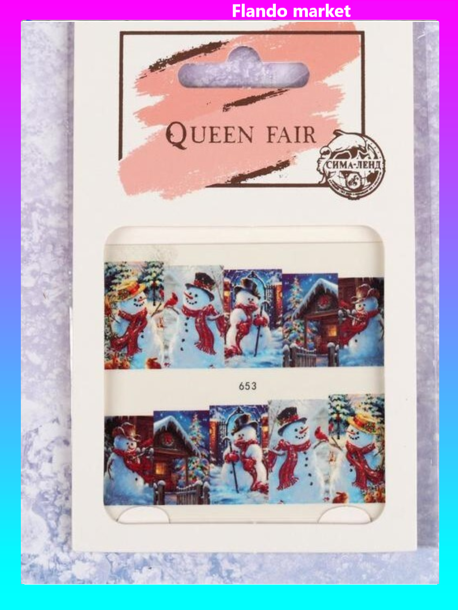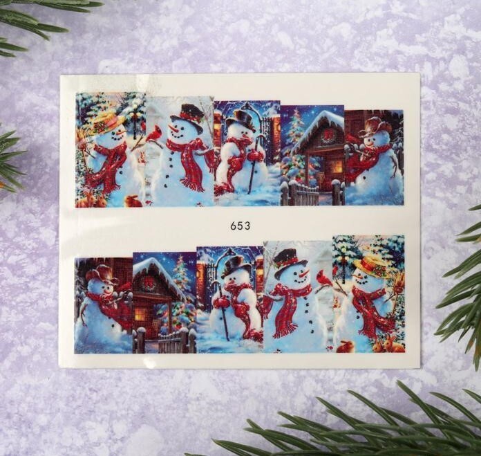 !09 Слайдер-дизайн для ногтей «Снеговики», водный