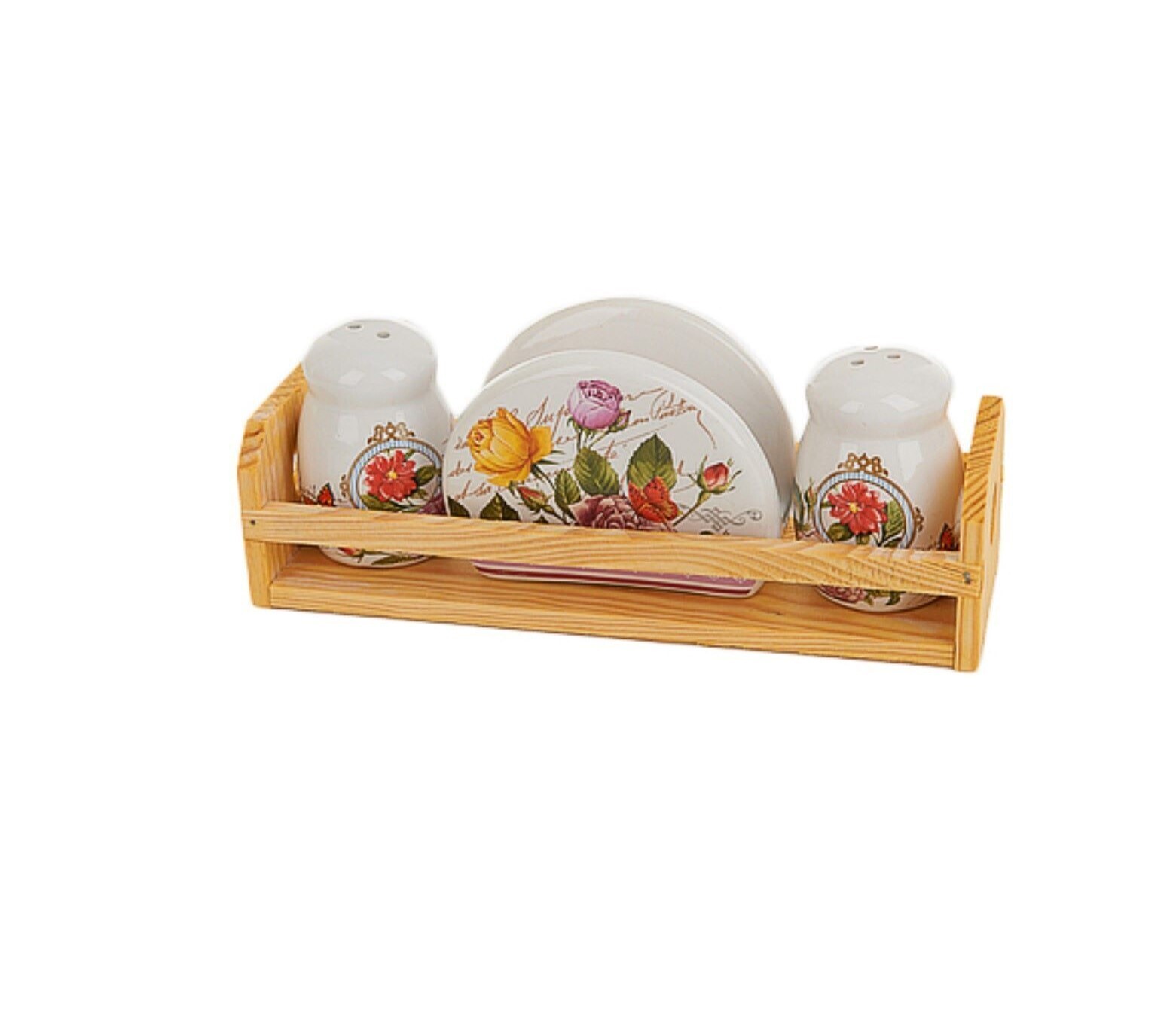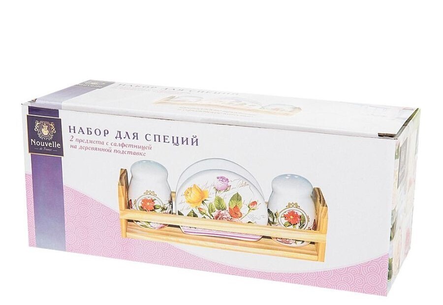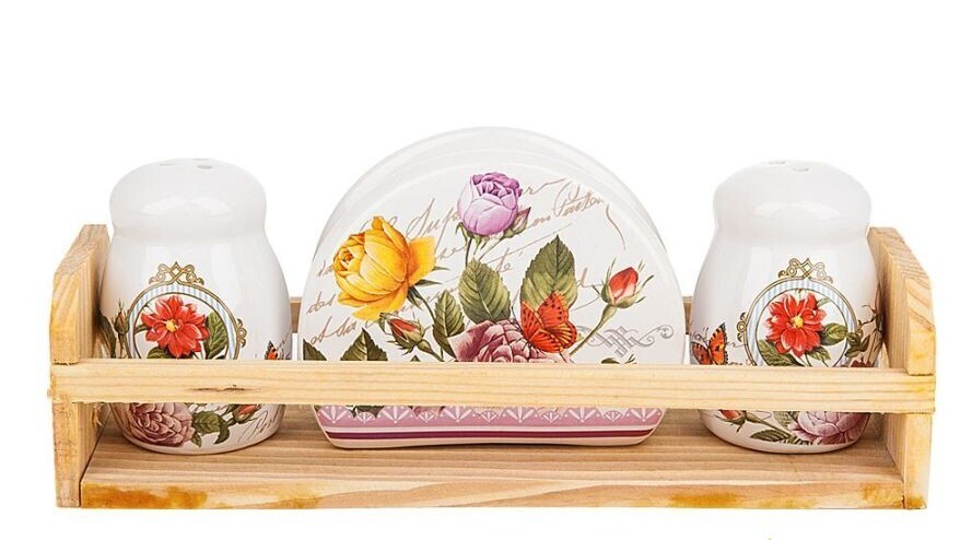 !09 Специи, набор 2пр. + салфетница "Лето в Европе" 23*7,5*9см. (на деревянной подставке) (подарочная уп