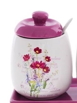 !09 Баночка для специй с ложечкой 13x12x12 см. керамика цвет сиреневый