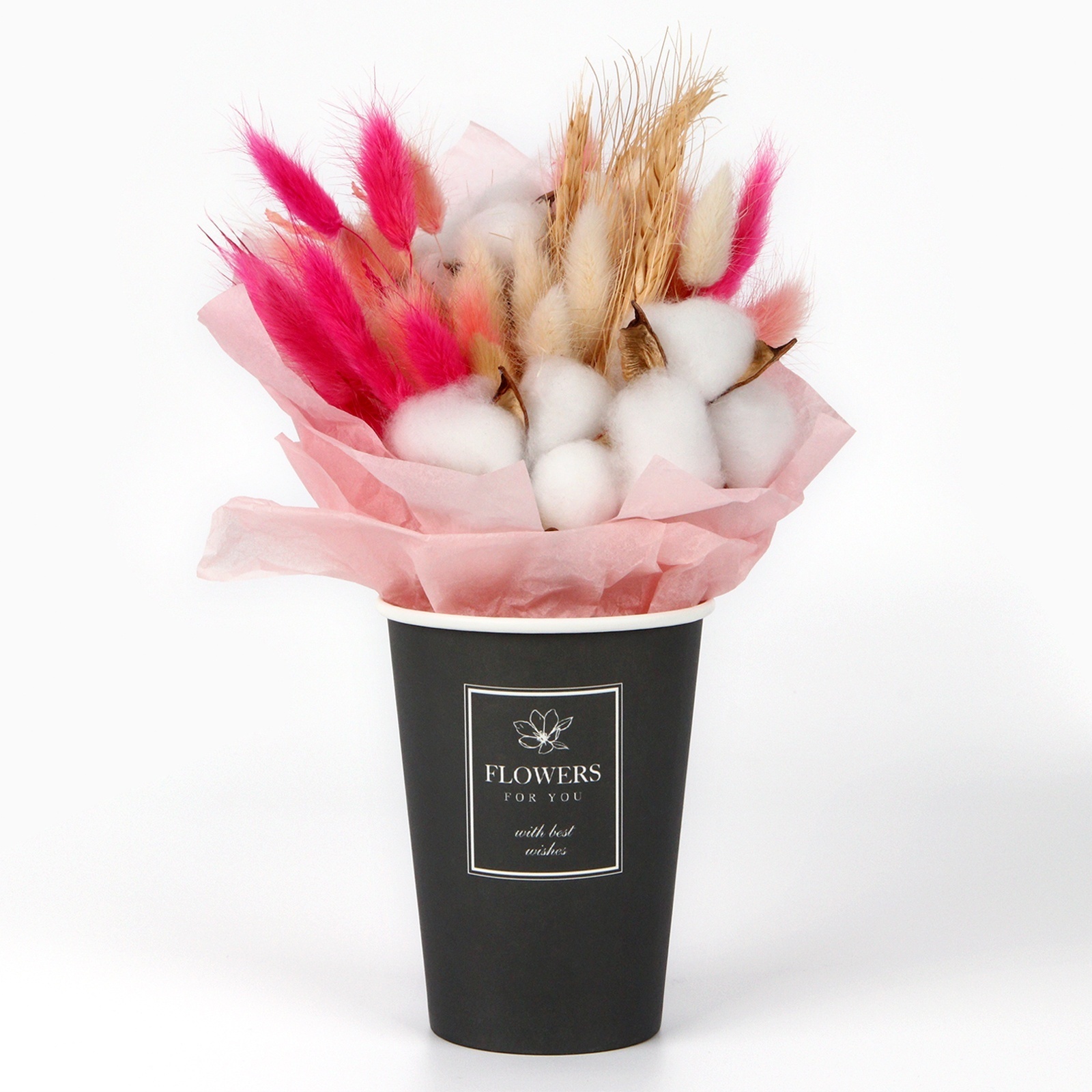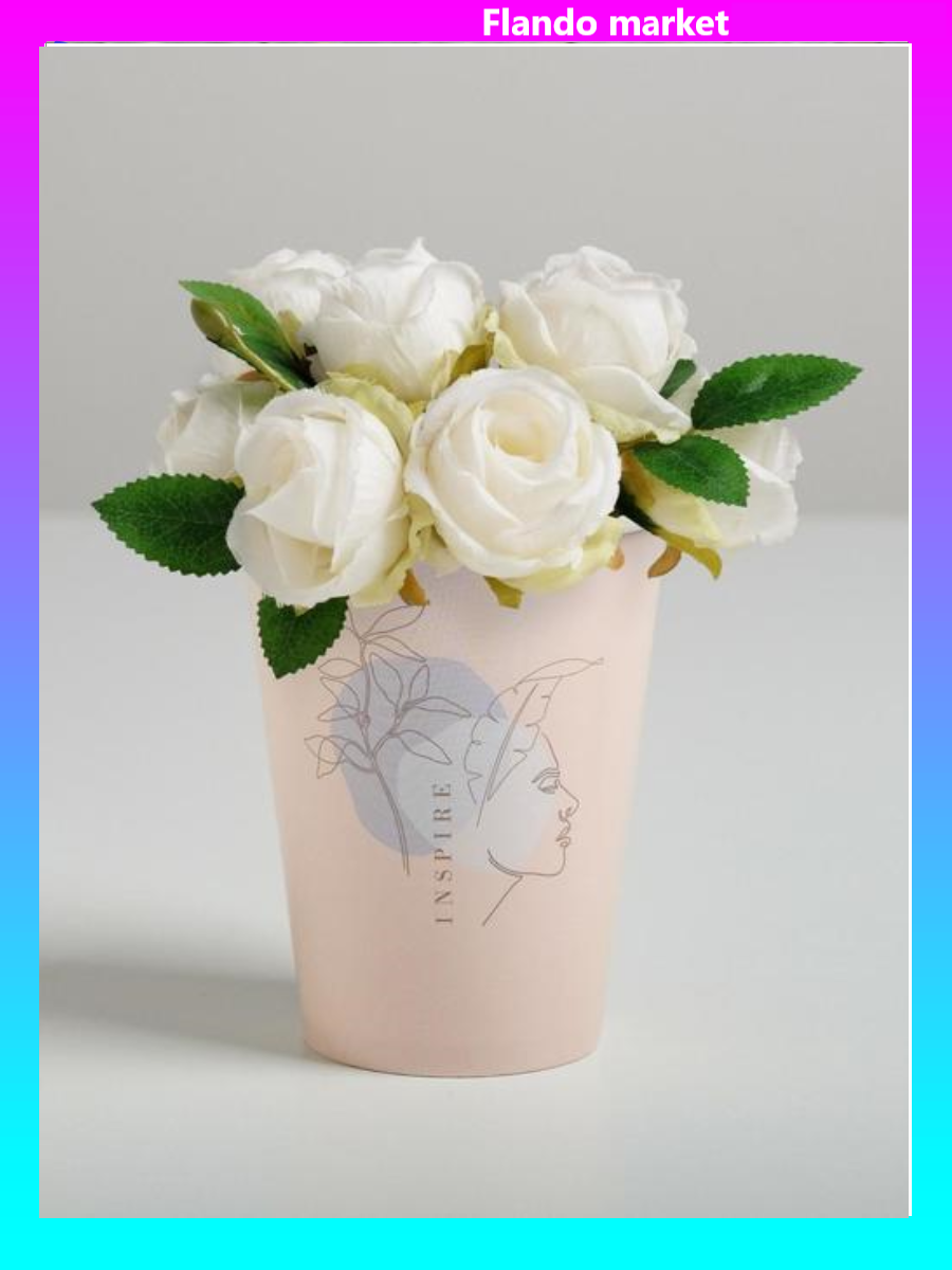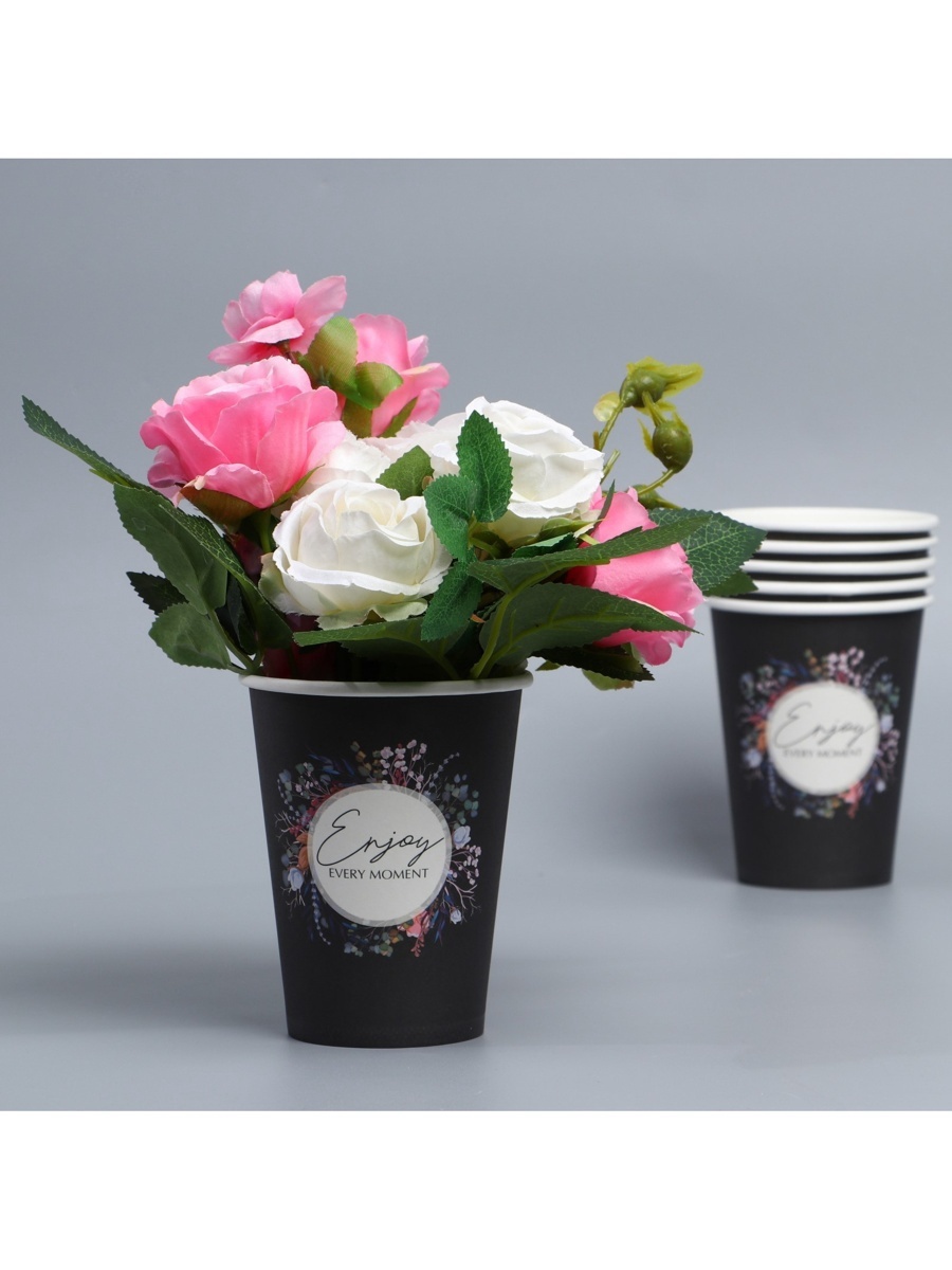 !09 Стаканчики для цветов микс (набор 8 штук) : «Inspire» 350 мл.(4 штуки) + Enjoy, 350 мл (3 штуки) + Best wishes, 350 мл. (1 штука)