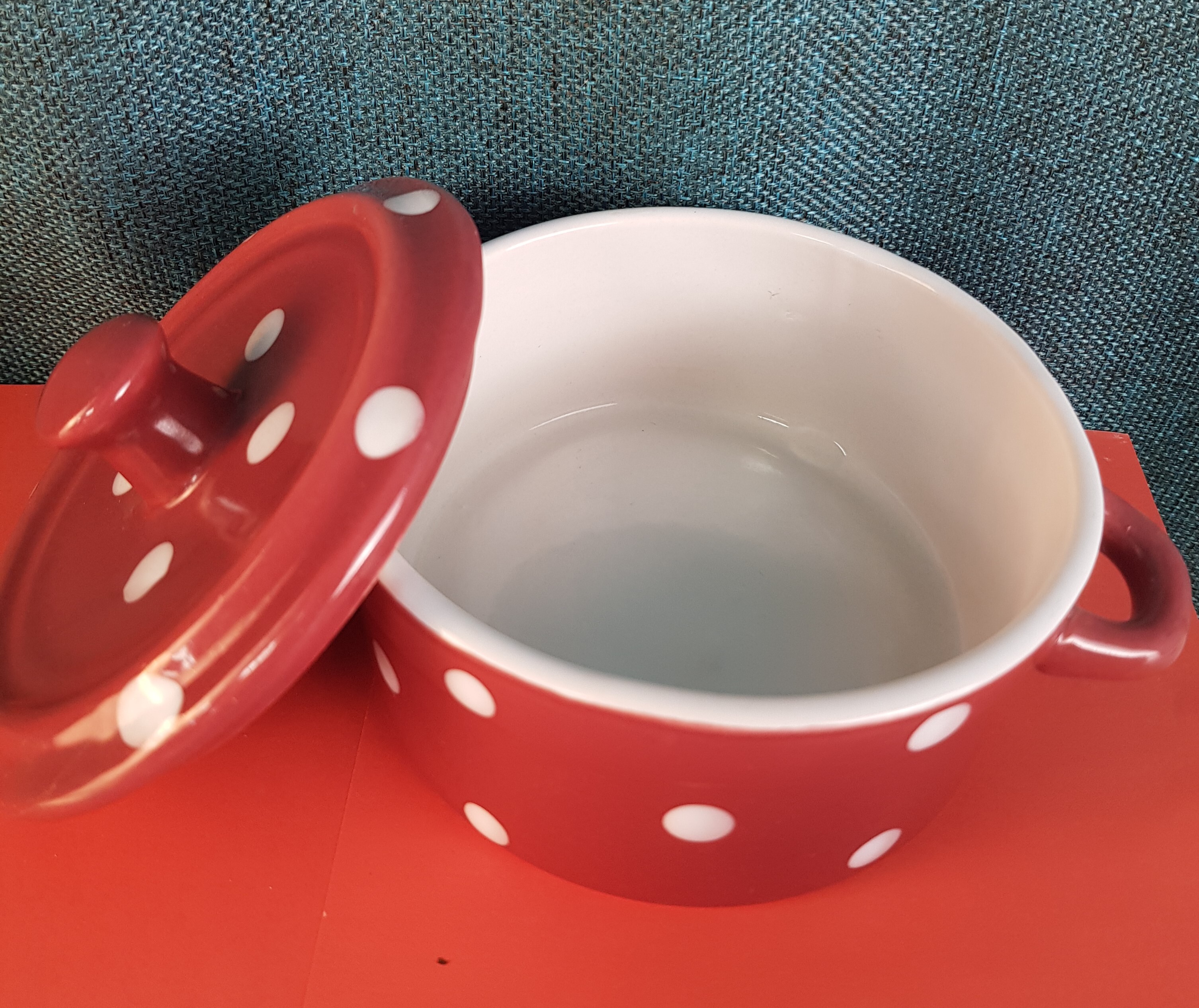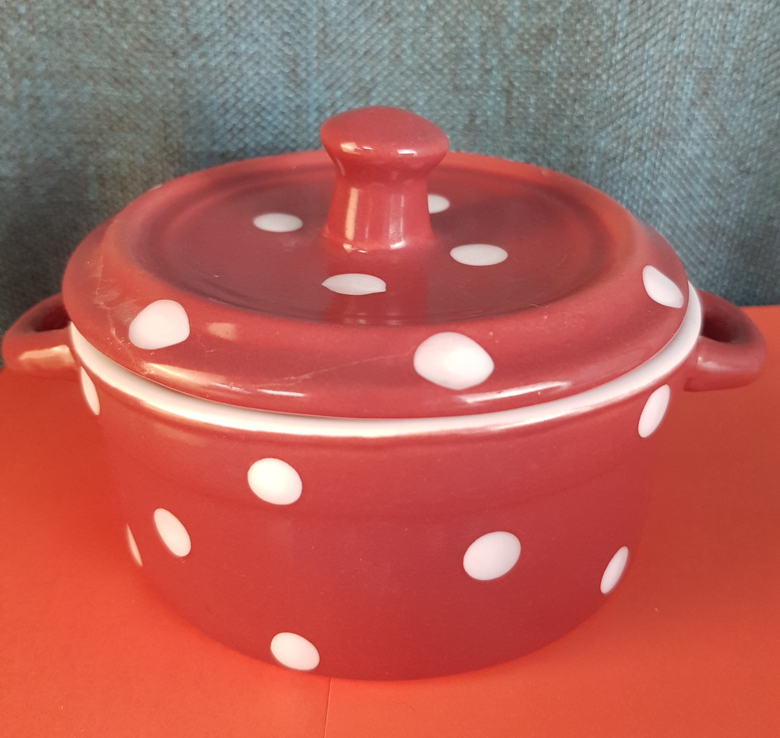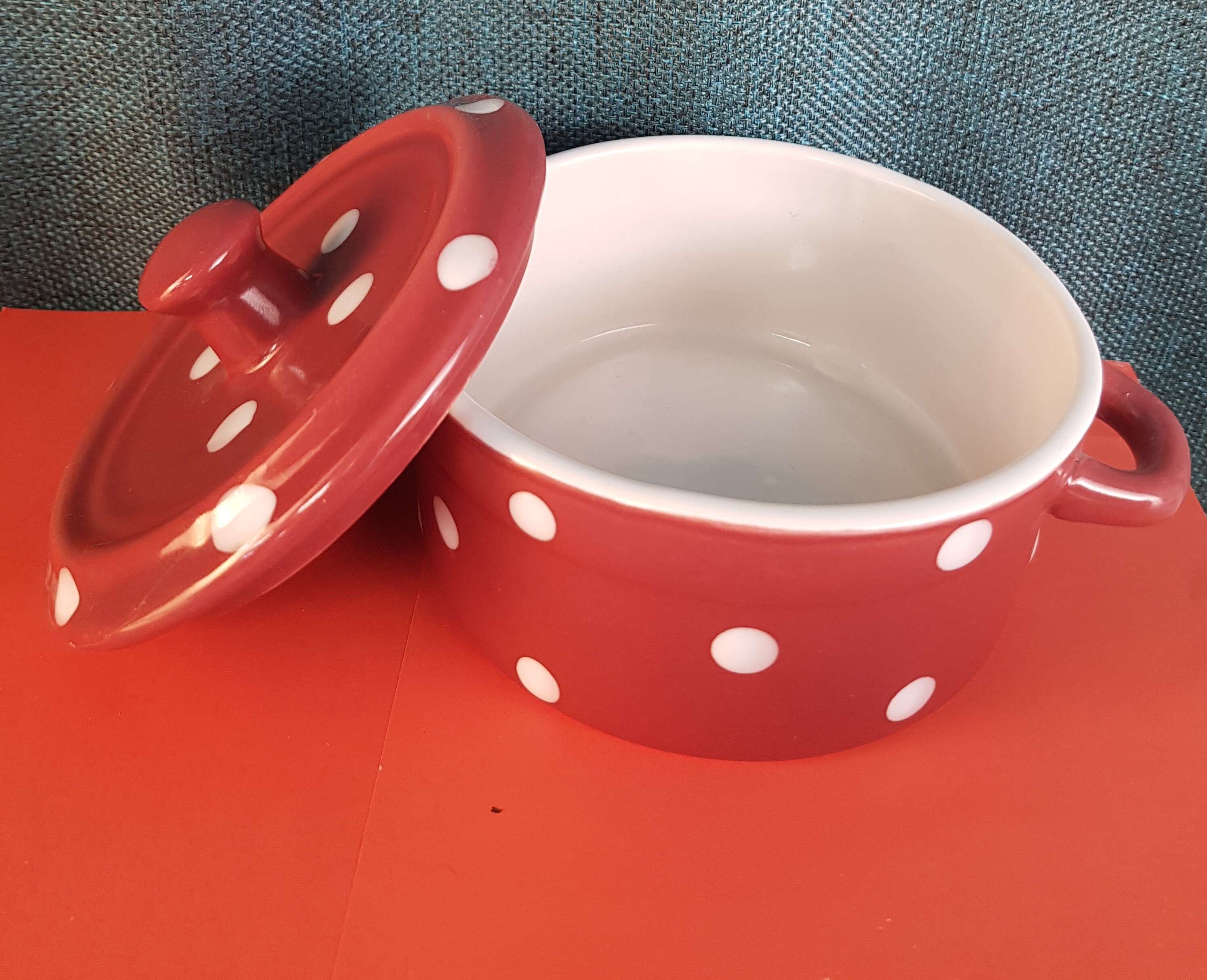 !09 Супница-кокотница круглая с крышкой, диаметр 10,5 см., высота 8,5 см. Франция Цвет красный