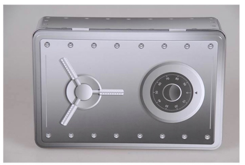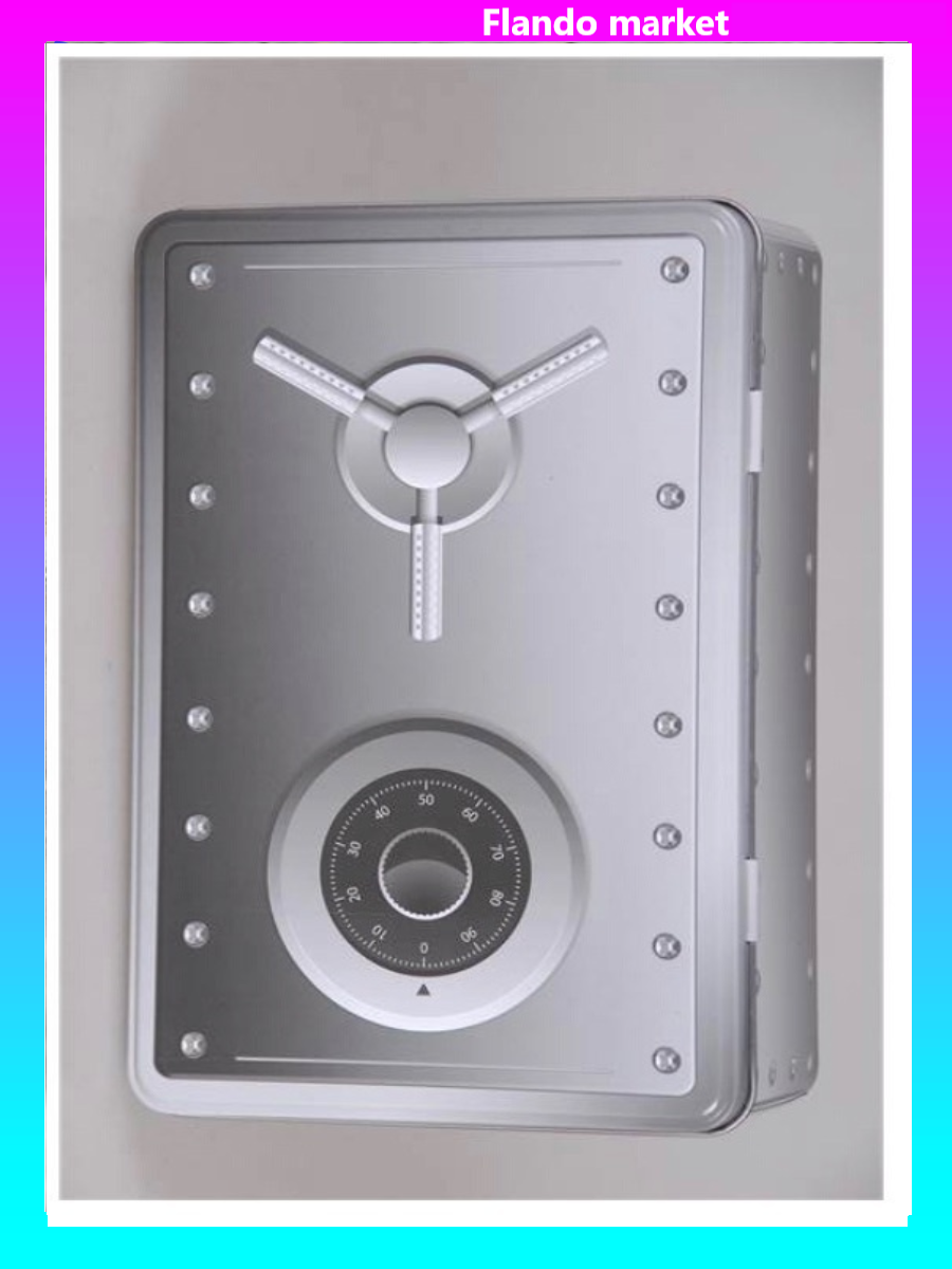 !09 Сувенир Набор подарочный "Сейф" (20.2x13.2x6.7), в коробке из окраш-го черного металла: фляга д/спиртных напитков, 200 мл и 2 стопки;