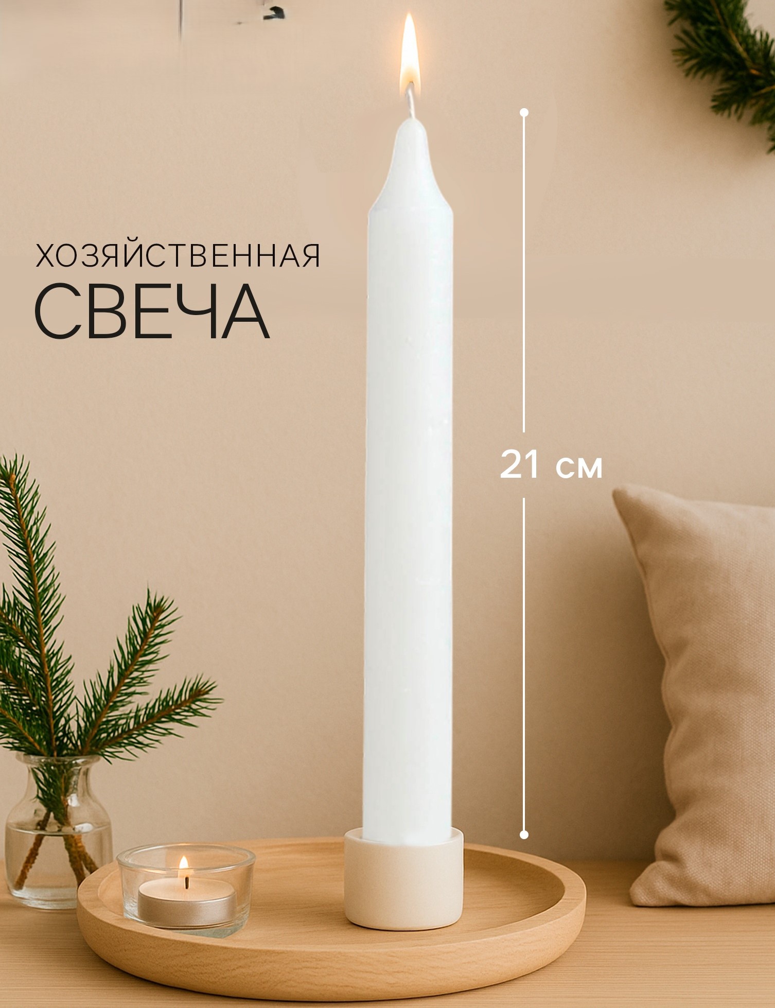 !09 Свеча (набор 10 штук) хозяйственная 2,4×21 см. 80 грамм цвет белый
