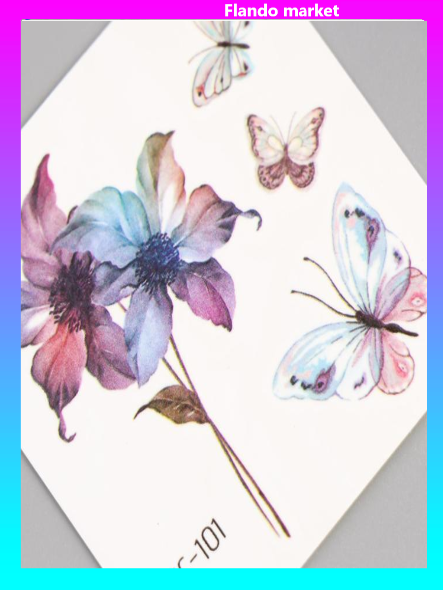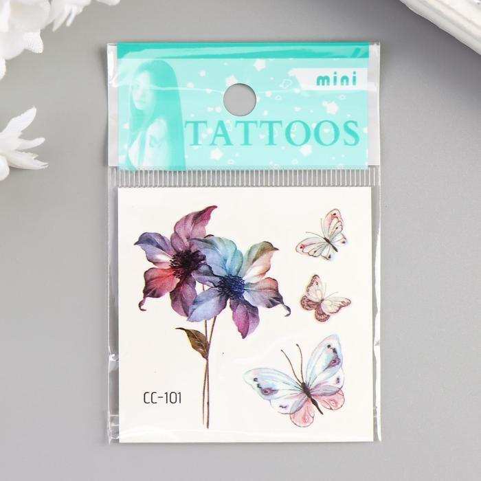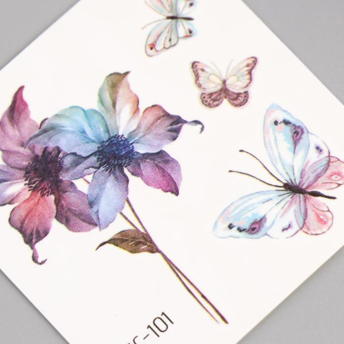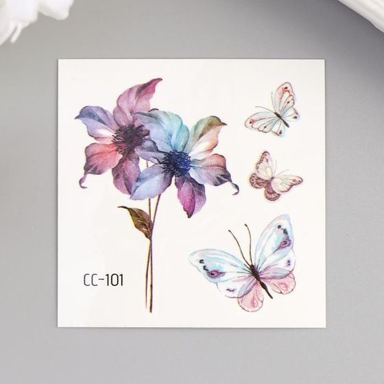 !09 Татуировка 3 штуки на тело цветная "Акварельные цветы и бабочки" 6х6 см.