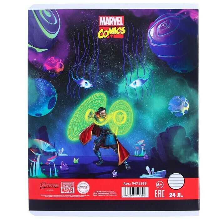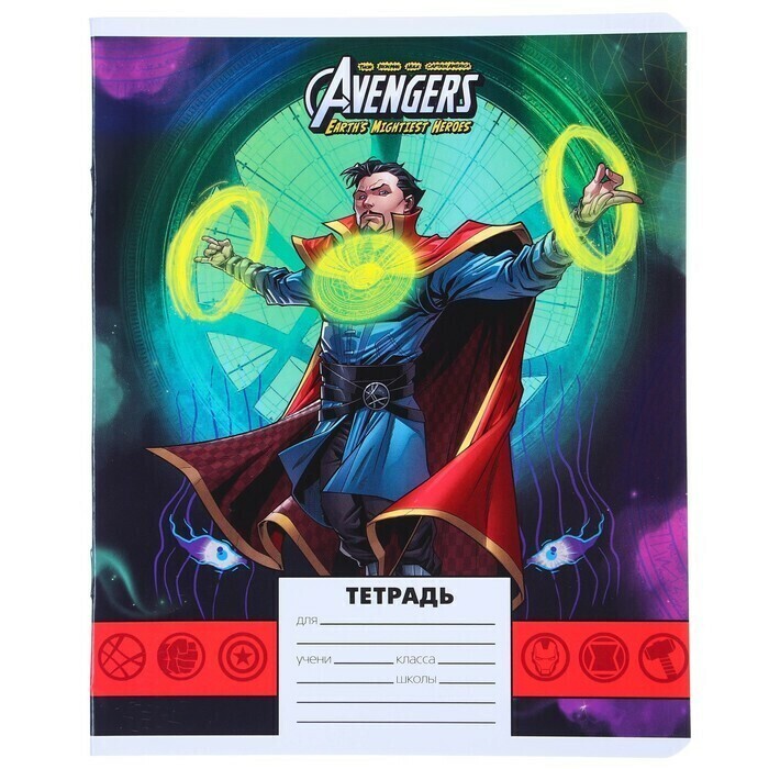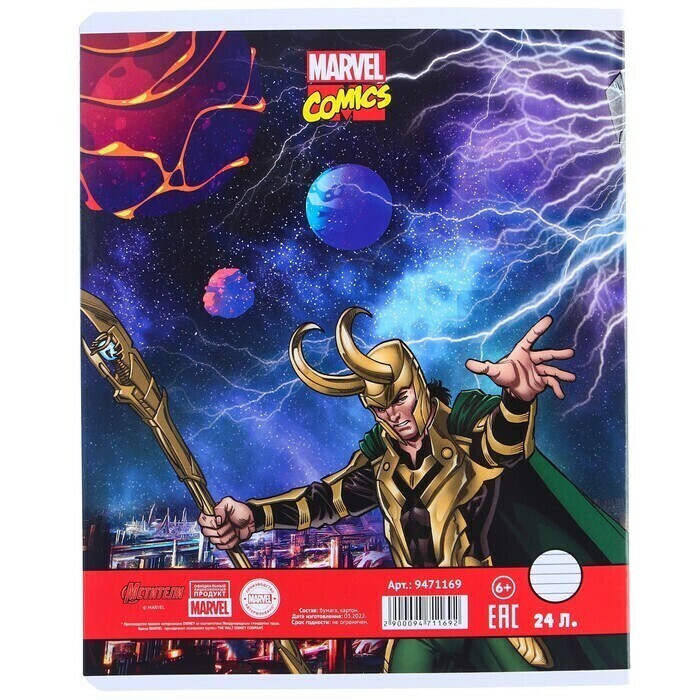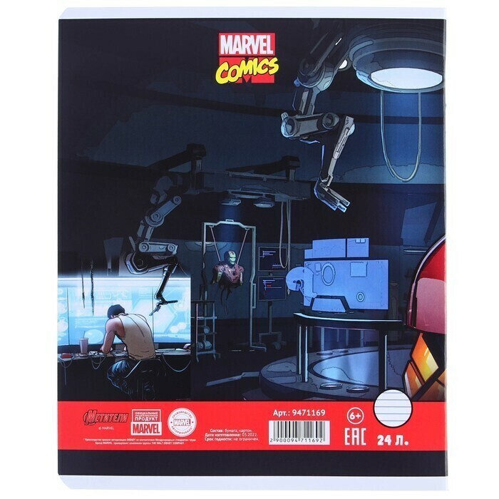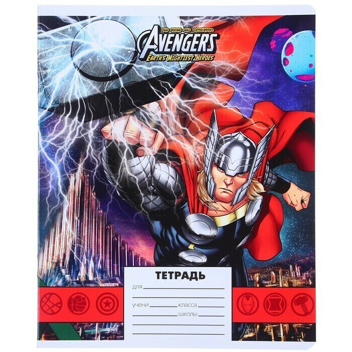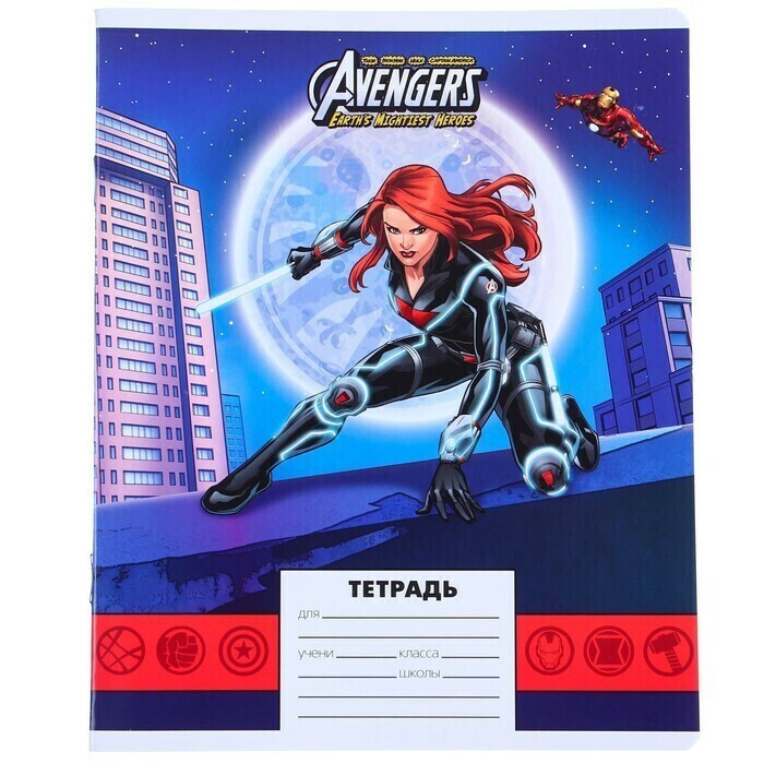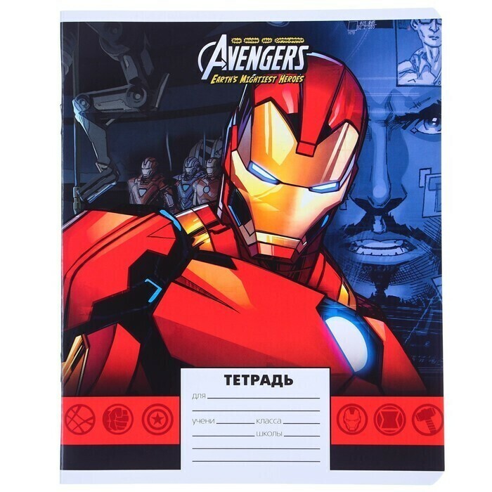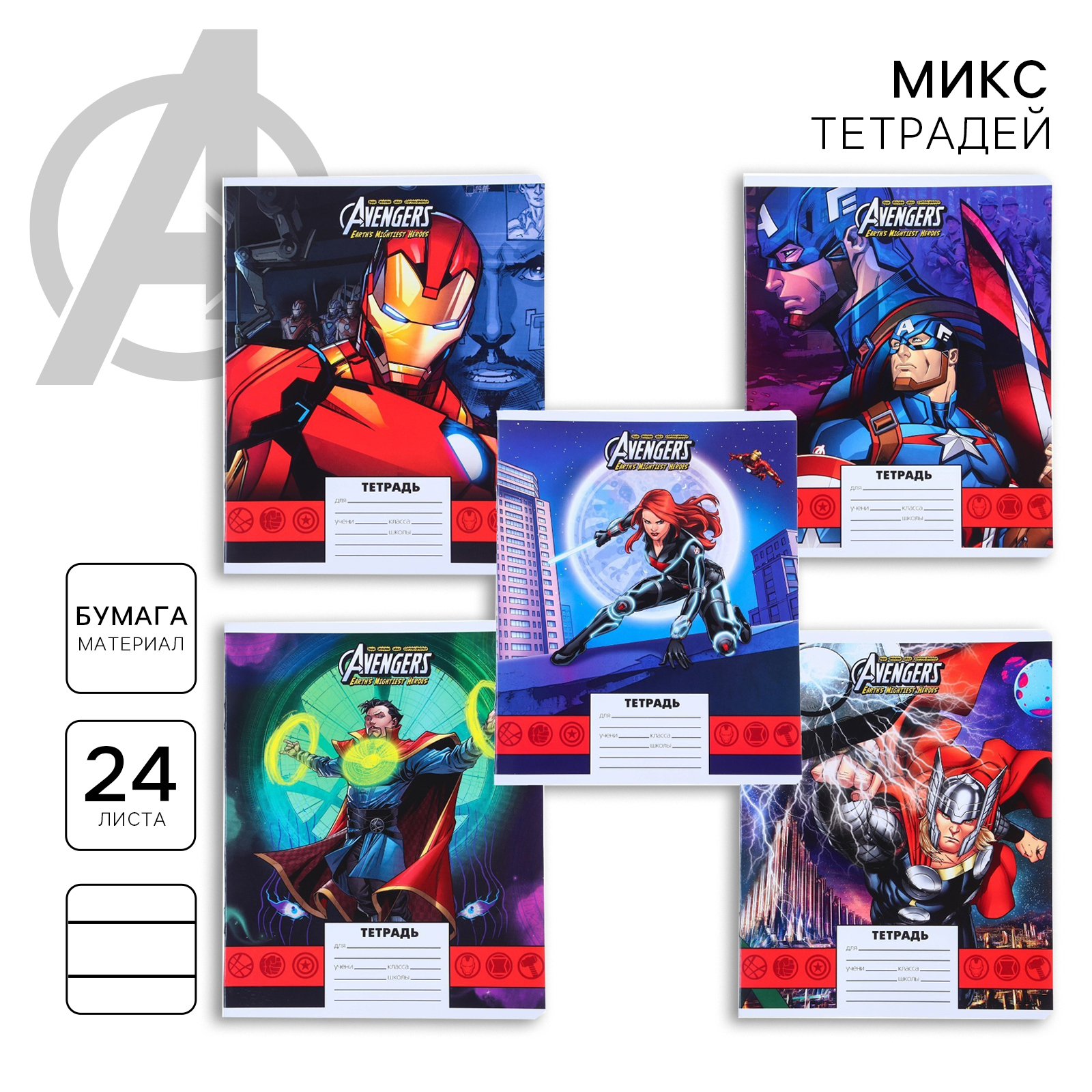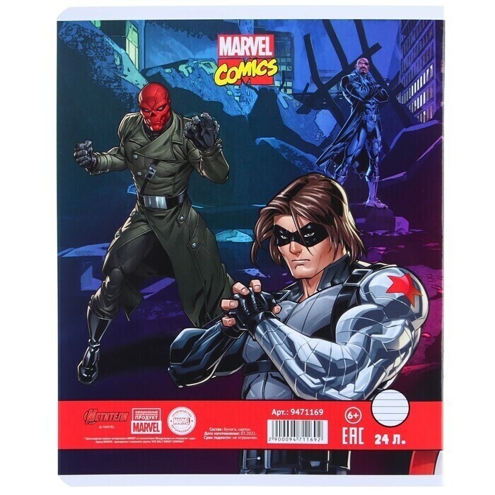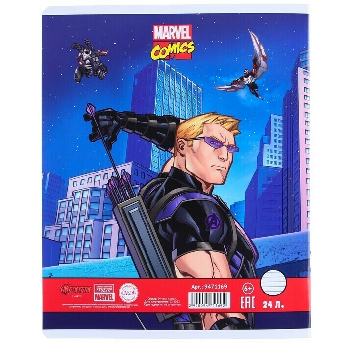 !09 Тетрадь 24 листа, (набор 11 штук) МИКС, линейка, мелованная бумага, Мстители