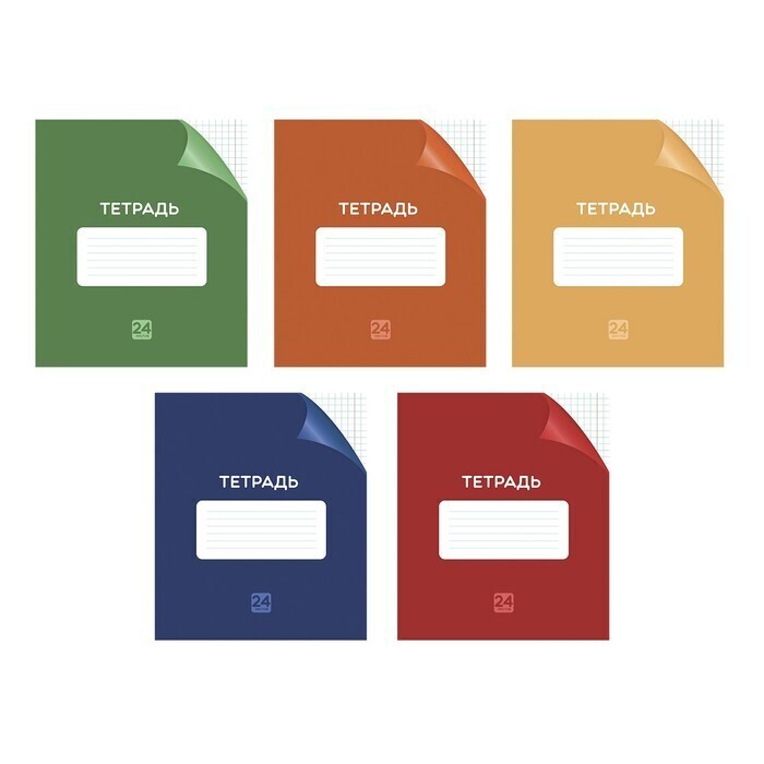!09 Тетрадь (набор 10 штук) 24 листа в клетку Однотонная "Классика с уголком", обложка мелованный картон, ВД-лак, блок офсет, МИКС