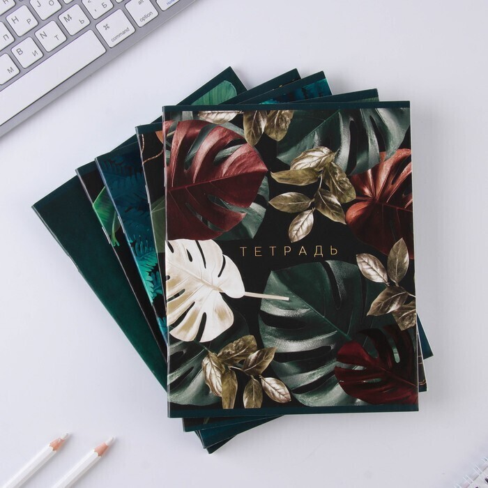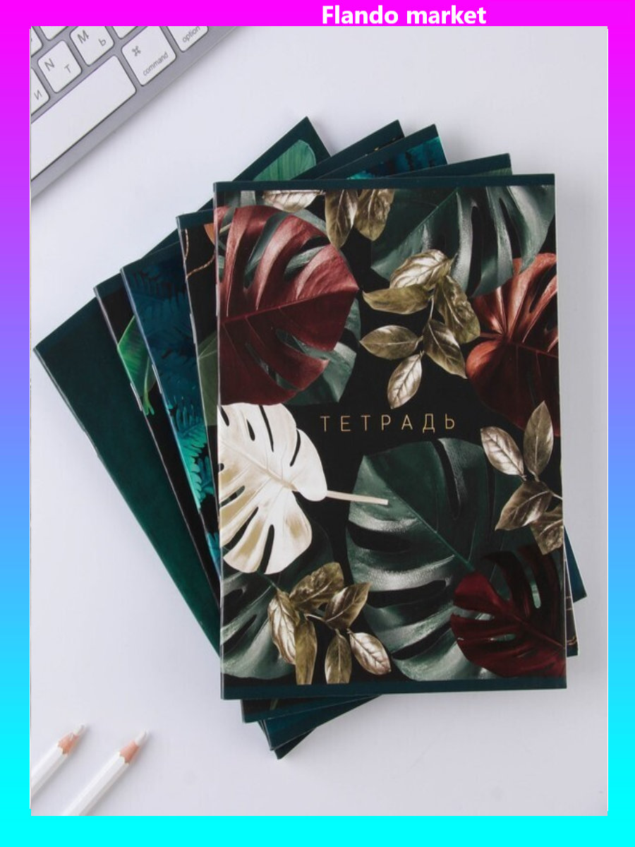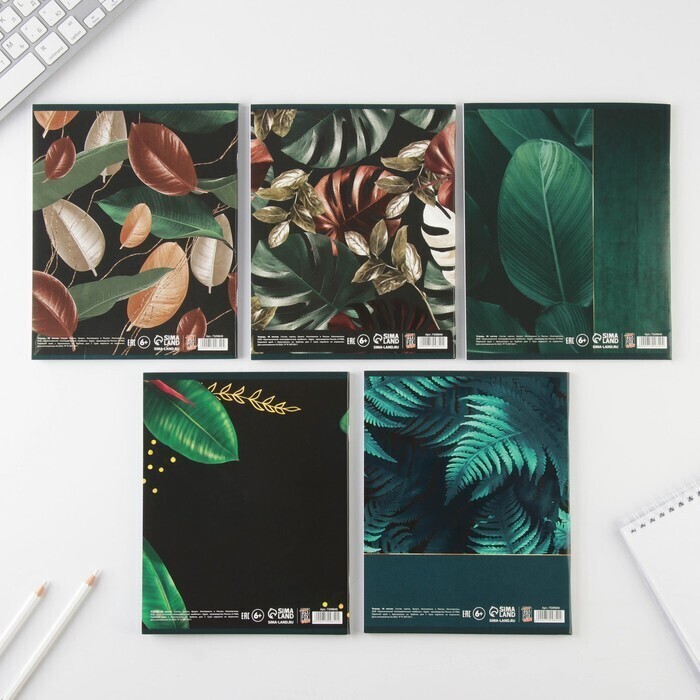 !09 Комплект из 5 тетрадей на скрепке формат А5: Тетрадь 48 листов «Тёмная ботаника», обложка мелованный картон 230 гр., внутренний блок в клетку 80 гр., белизна 96% дизайн микс