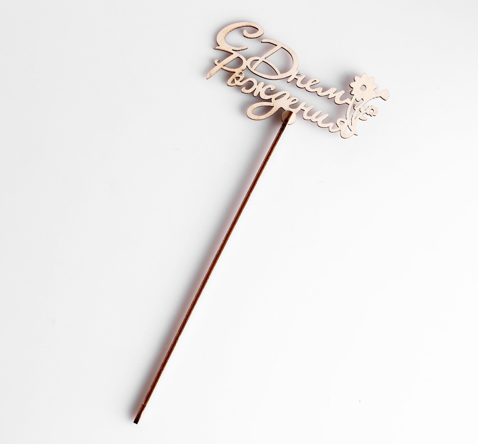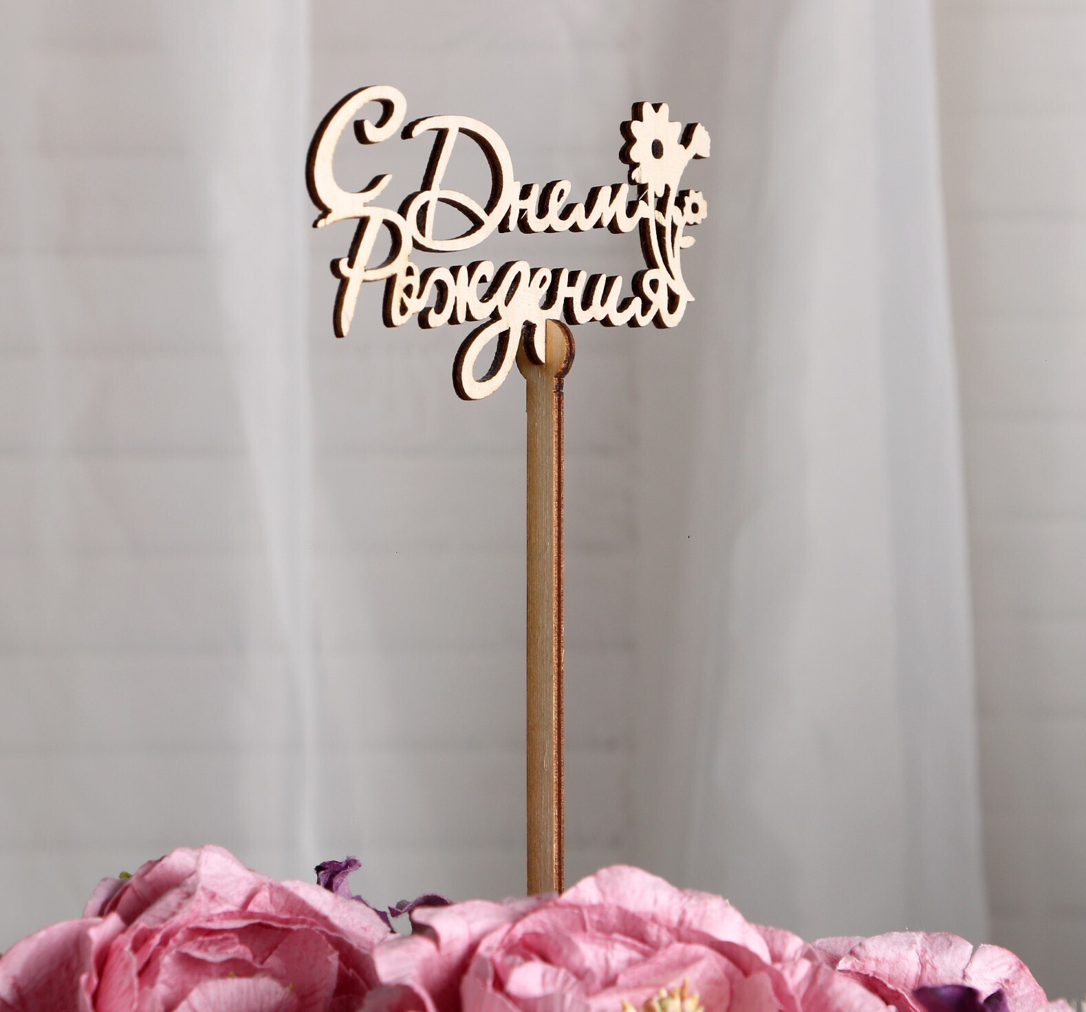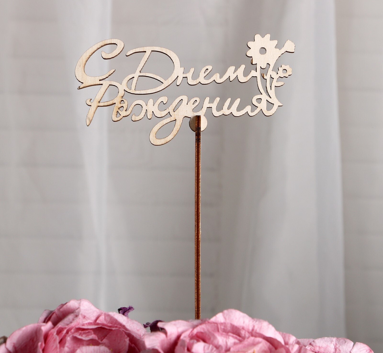 !09 Набор из 2-х топперов - Топпер «С Днем Рождения», с цветком стандарт, 12x6 см.