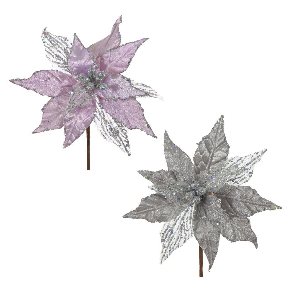 Цветок искусственный "Пуансеттия", L22 W22 H38 см, 2в.