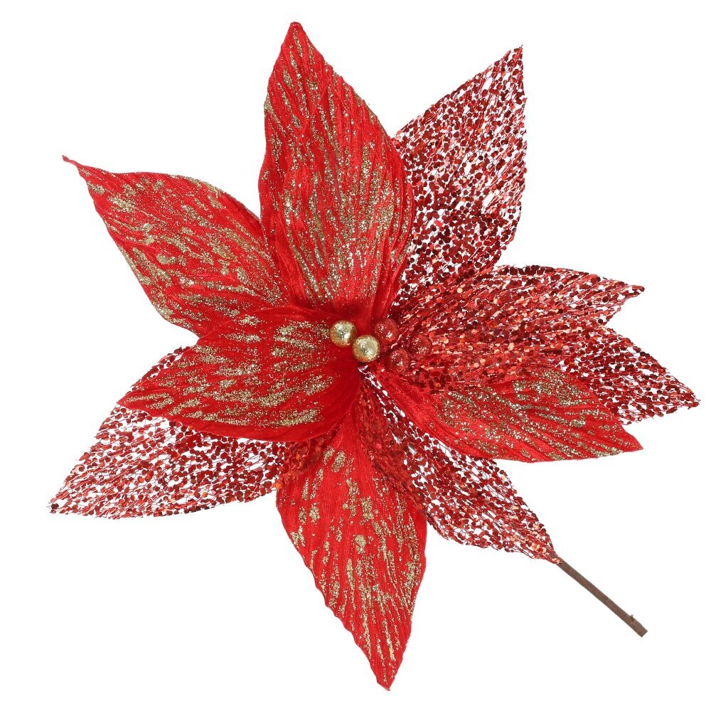 Цветок искусственный "Пуансеттия", L23 W23 H36 см