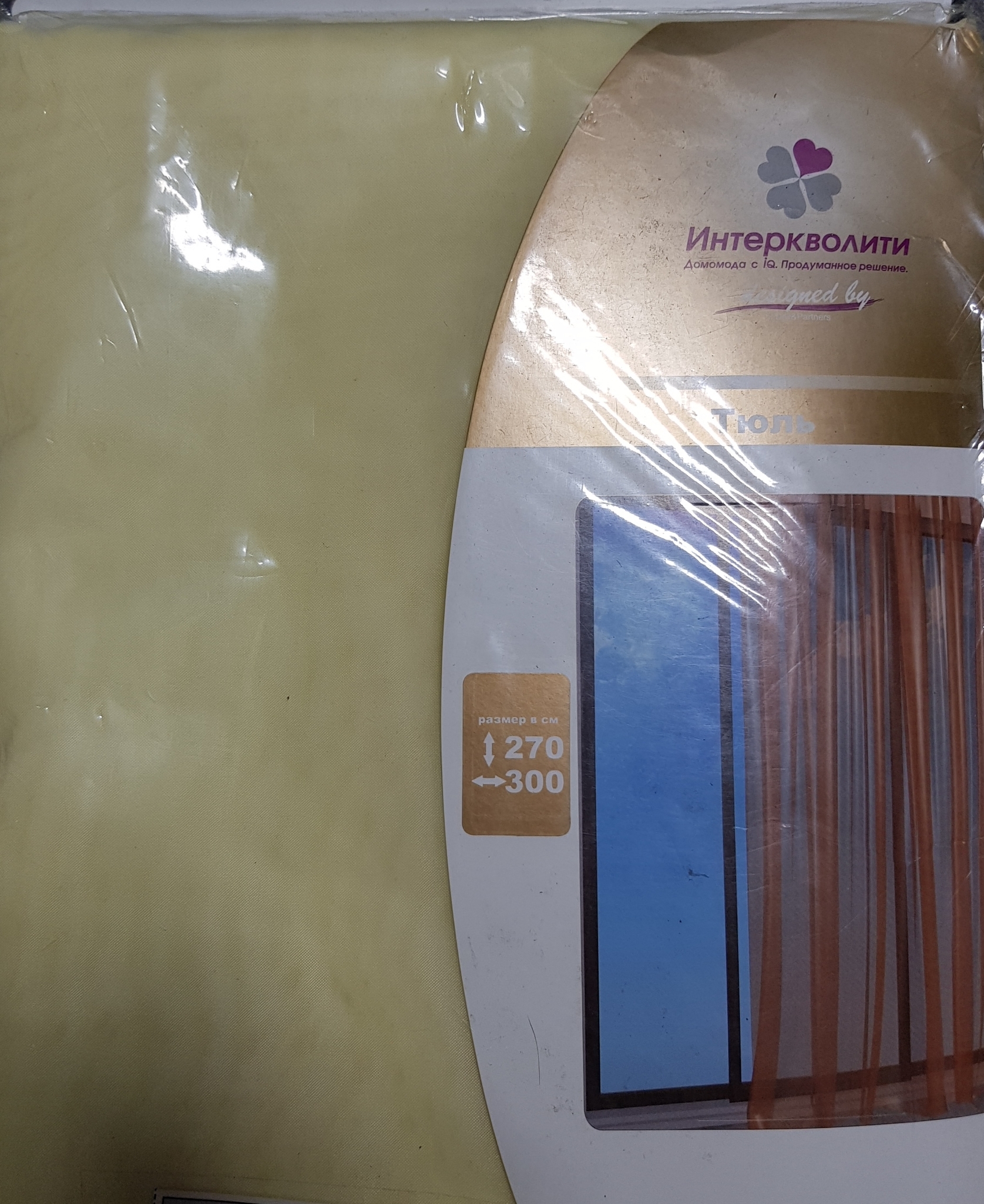 !09 Тюль 300*270 см., бледно желтая,шторная лента