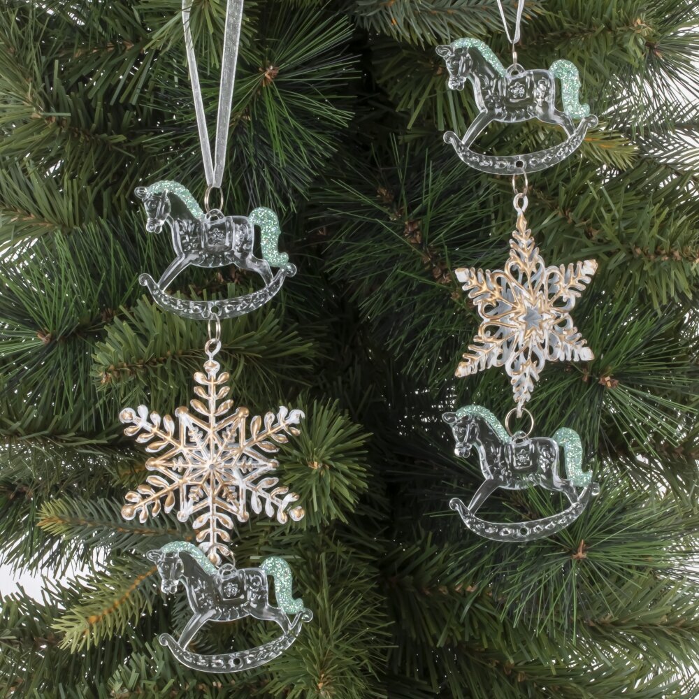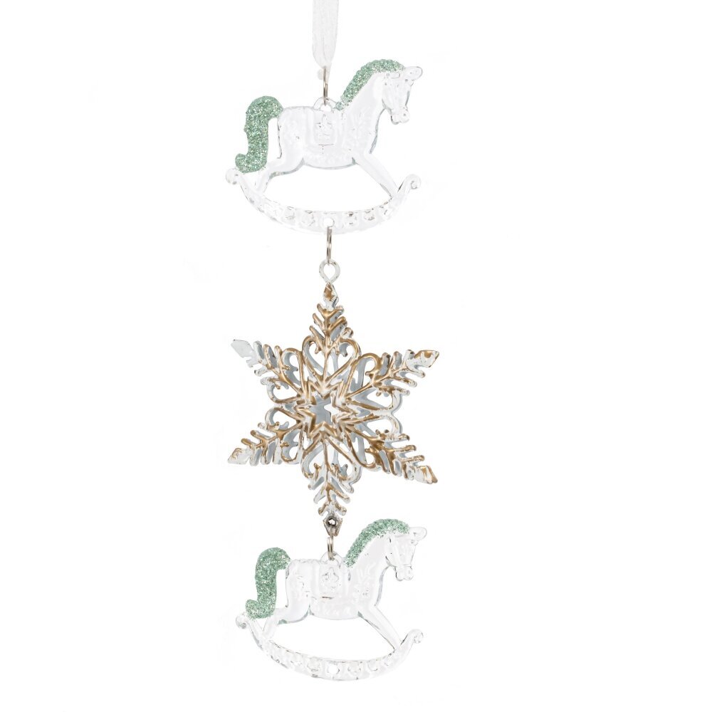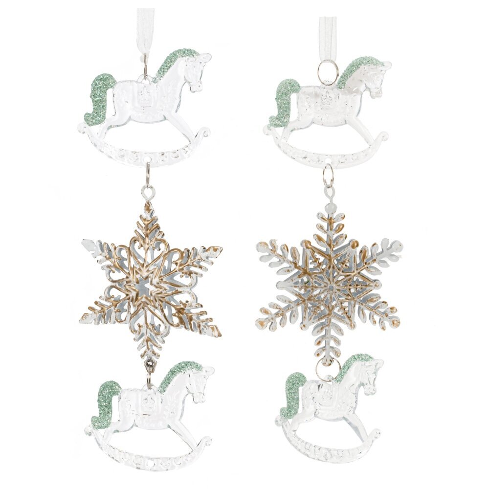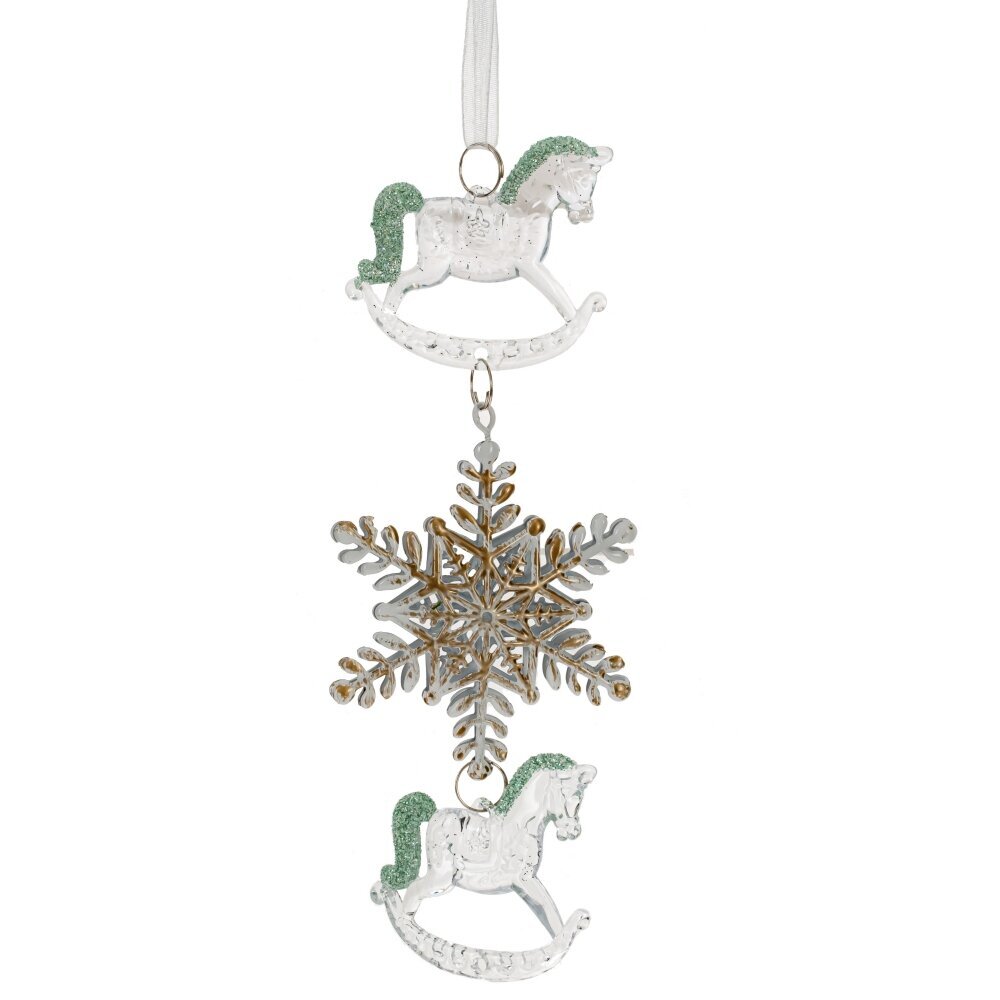 Украшение новогоднеe подвеска"Снежинка с лошадками", L6,5 W1 H19 см, 2в.