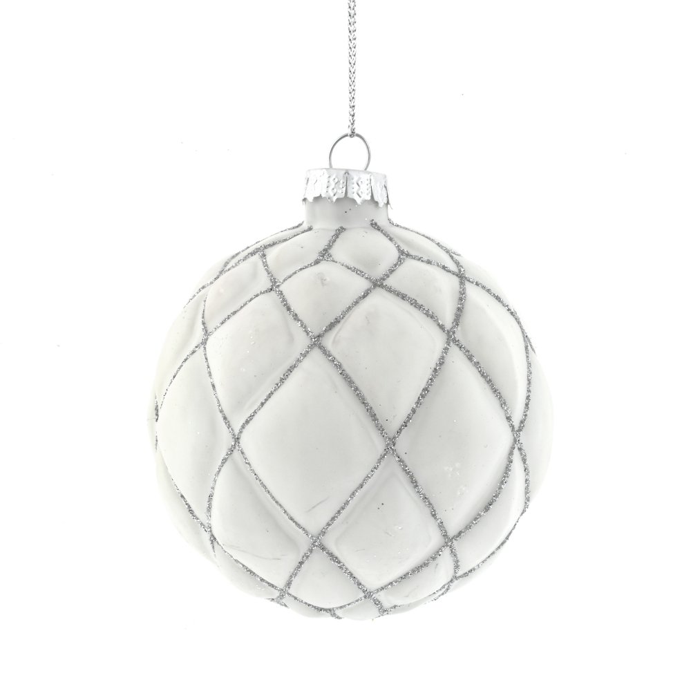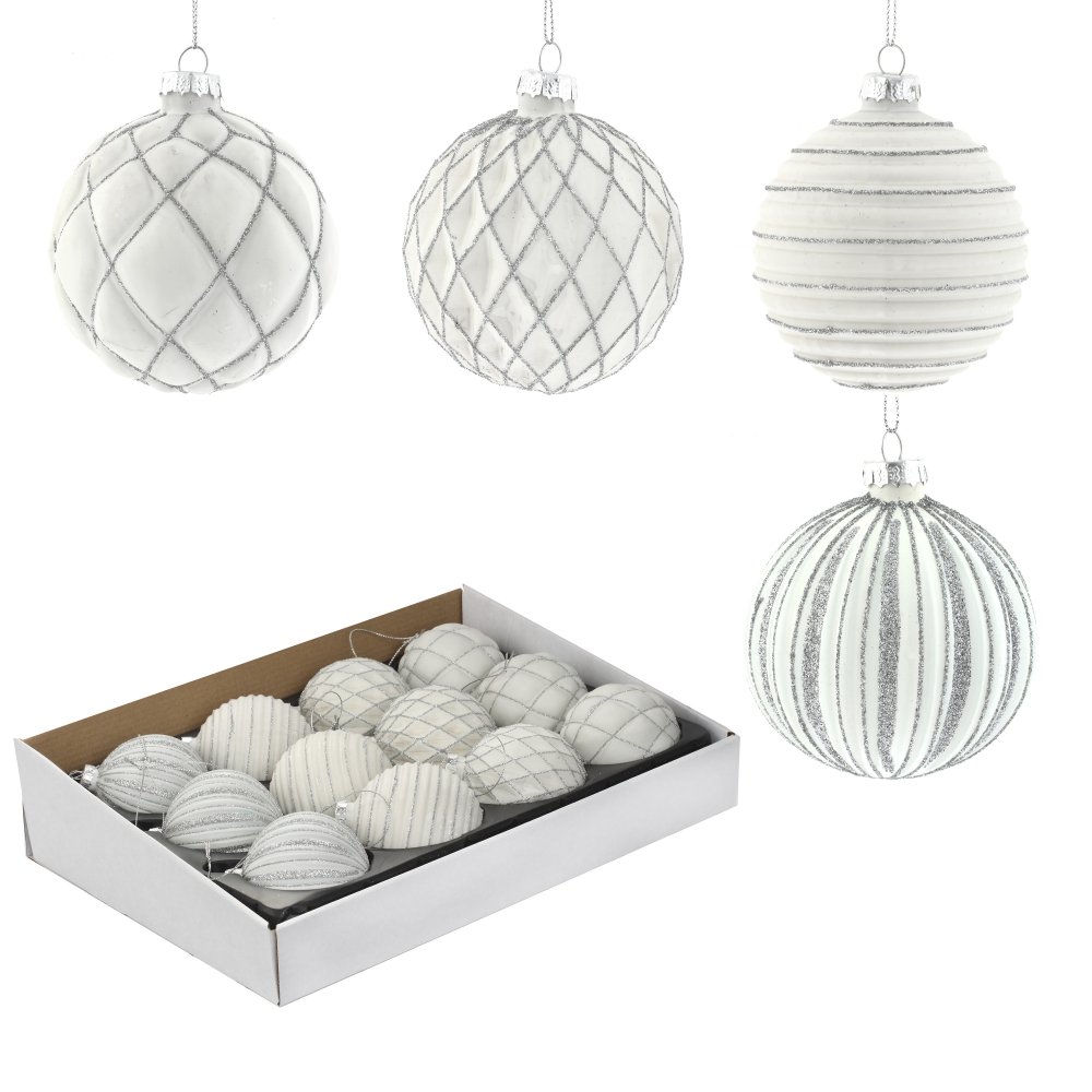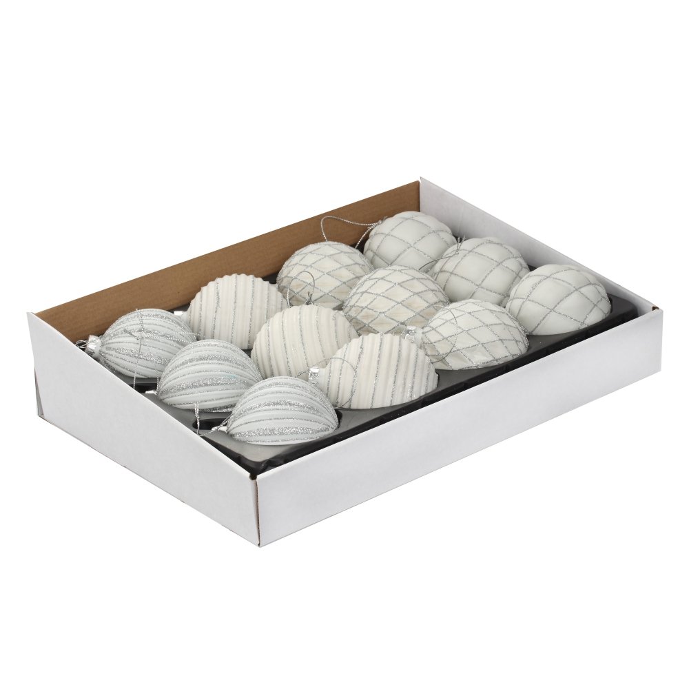 Украшение новогоднее Шар "Белая фантазия" (блок 12 шт), D8 см, L36 W28 H11 см, 4в.