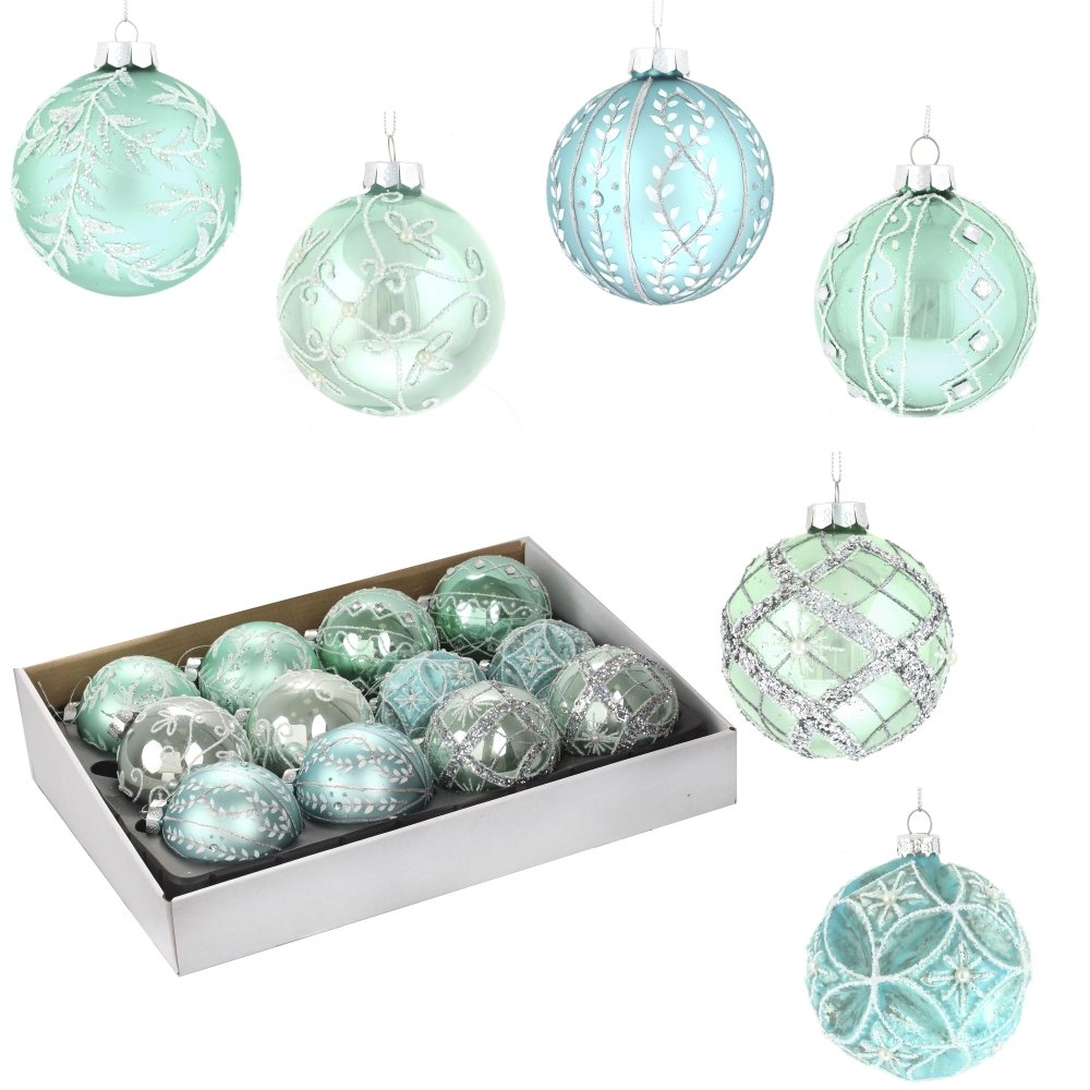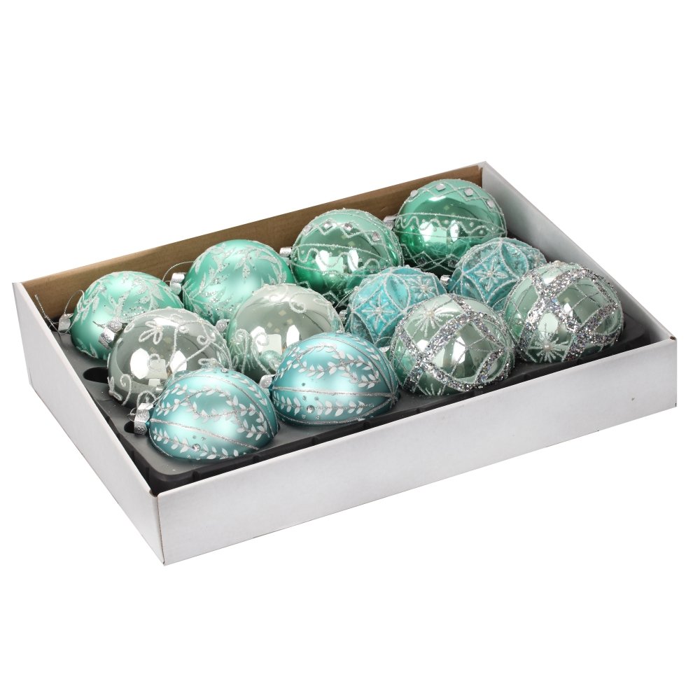 Украшение новогоднее Шар "Веселые ребята в бирюзовом" (блок 12 шт), D8 см, L36 W28 H11 см, 6в.