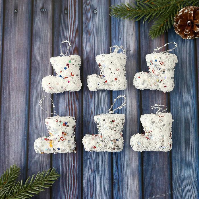 !09 Украшение ёлочное "Сапожки - волшебный перелив" (набор 12 шт) 5х4 см, белый