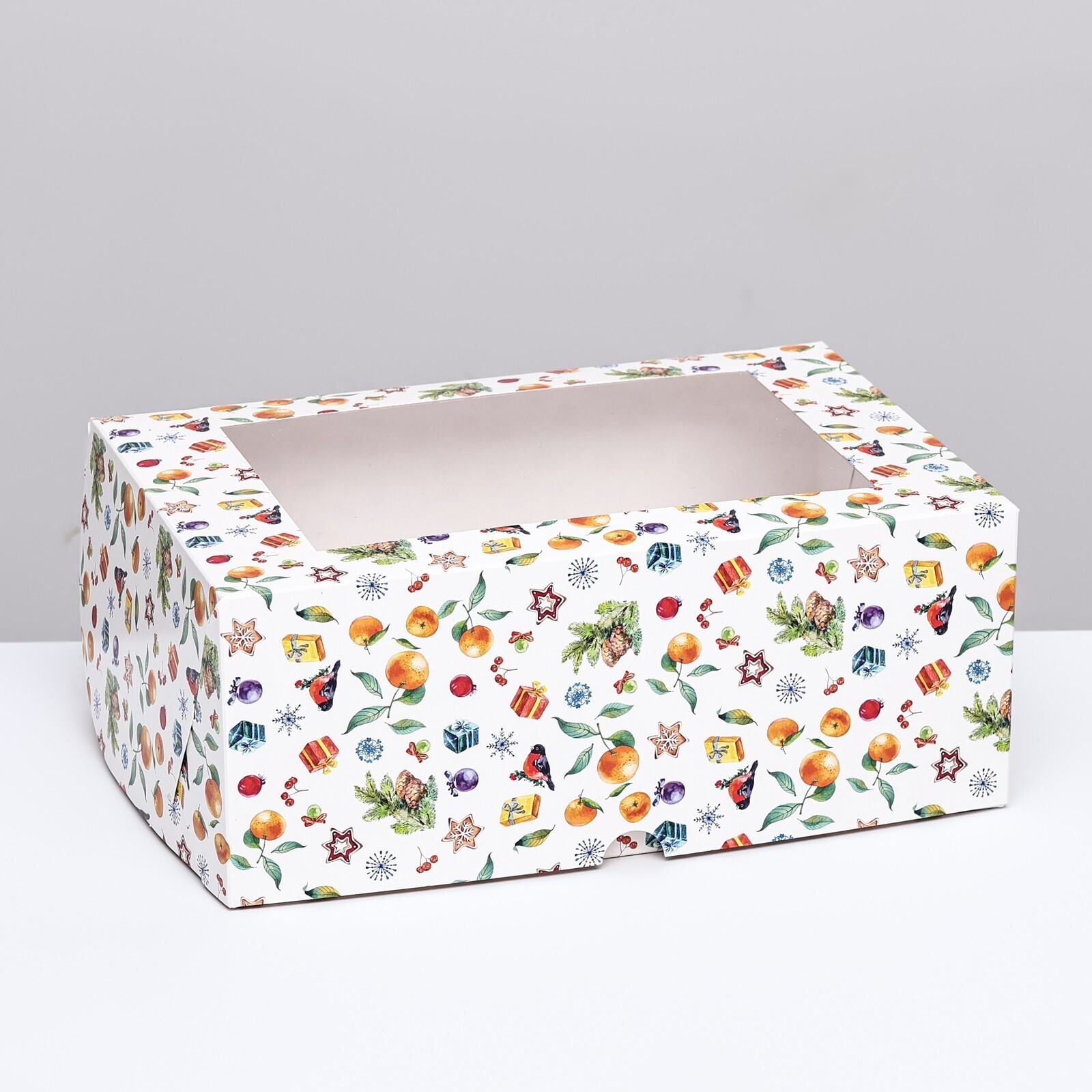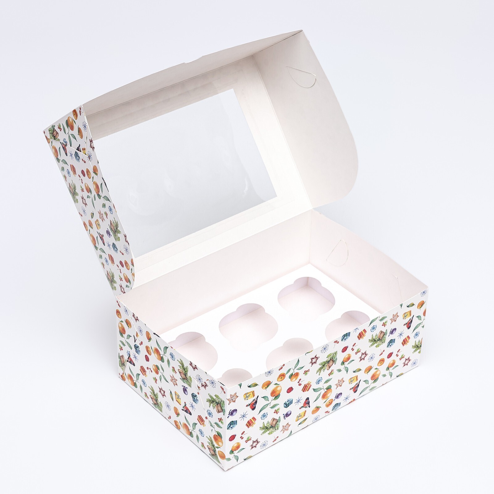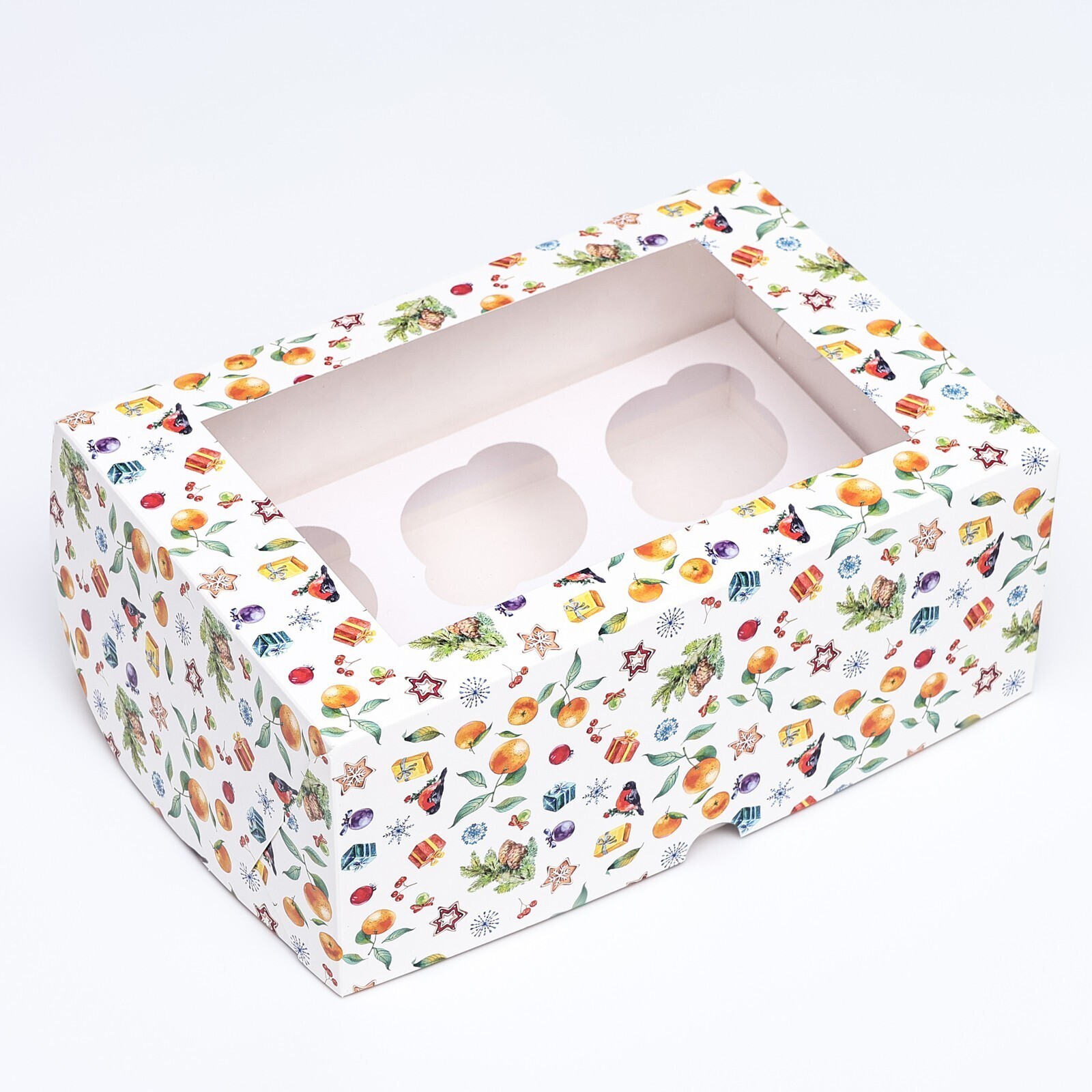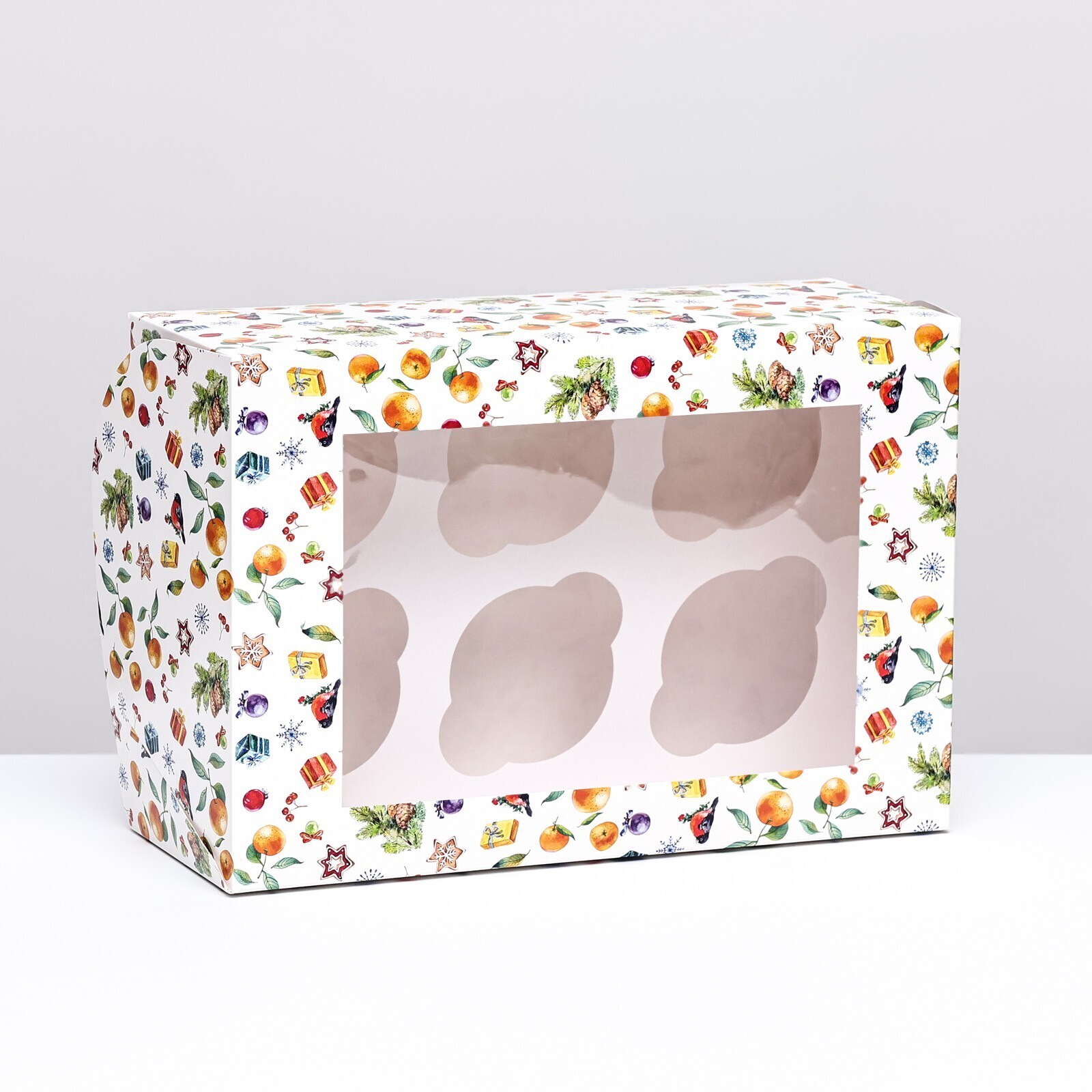 !09 Упаковка на 6 капкейков с окном "Новогоднее настроение", 25 х 17 х 10 см