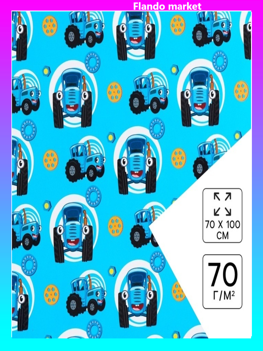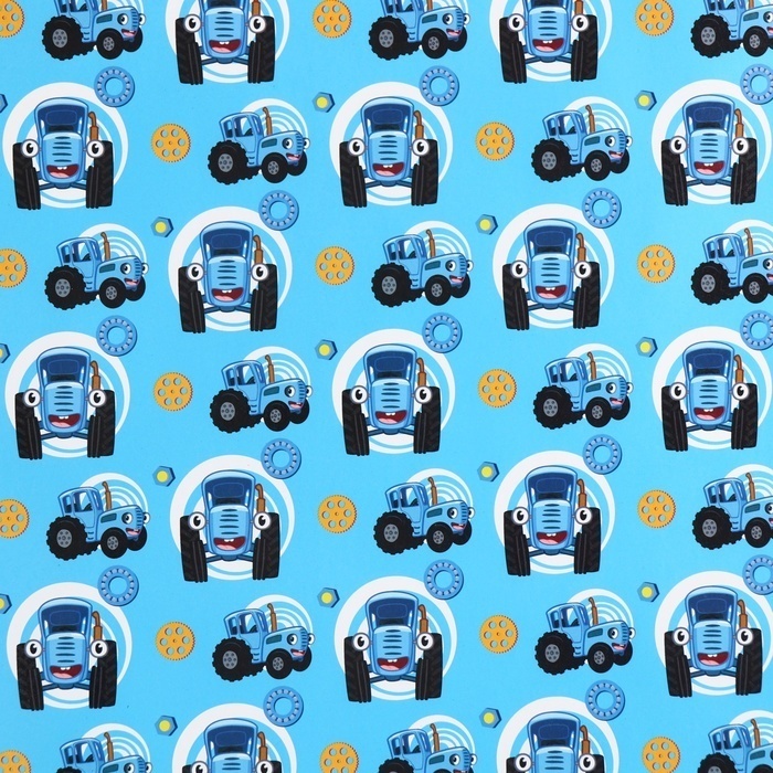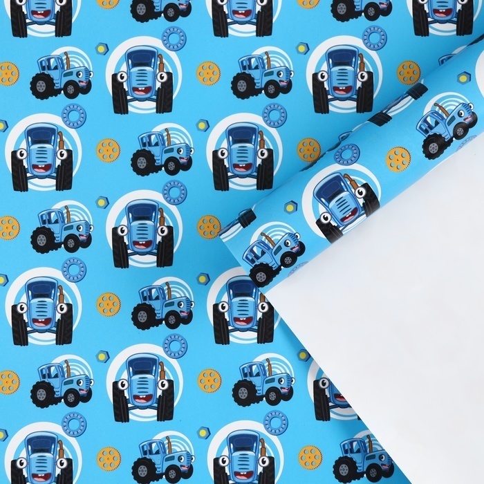 !09 Упаковочная бумага 2 листа, 70х100 см, Синий трактор