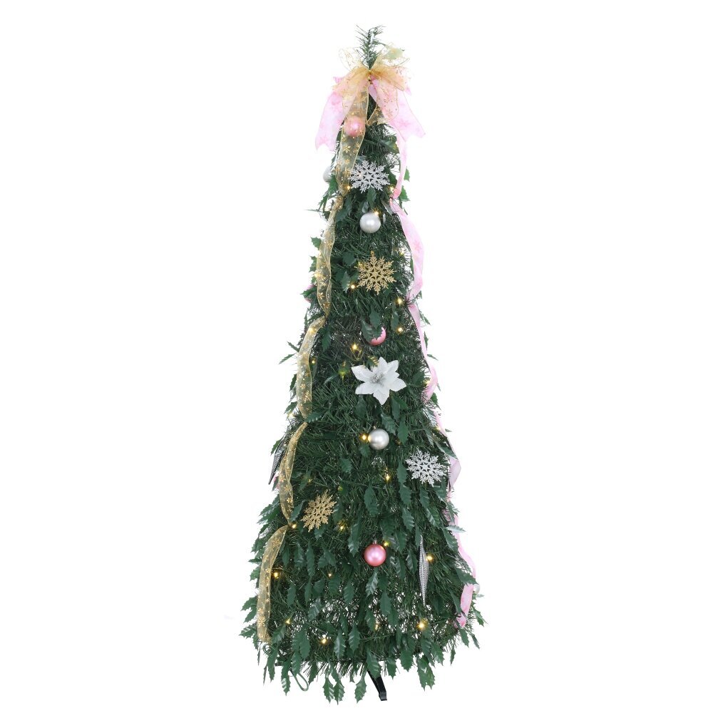 Ёлка искусств с подсвет от сети, L50 W50 H150, 100LED, 16 шаров + 3 банта, экспресс сборка