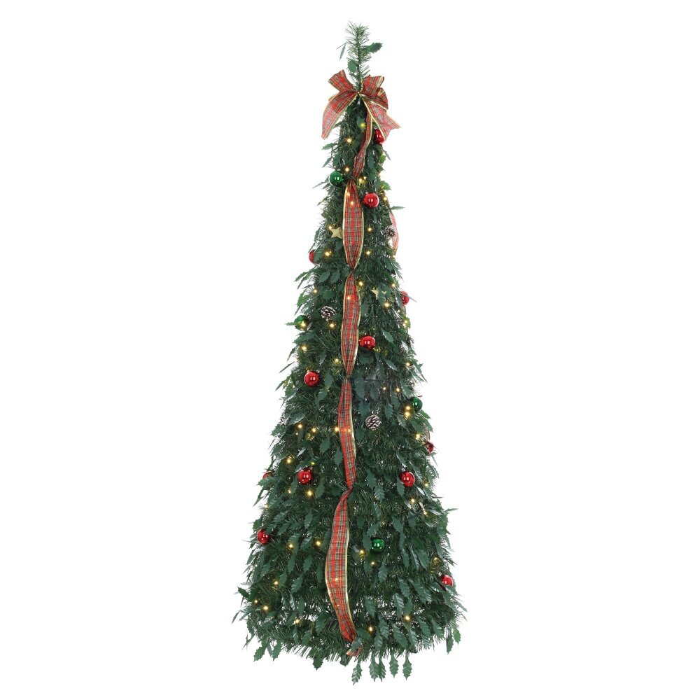 Ёлка искусств с подсвет от сети, L60 W60 H180, 150LED, 36 шаров +6 бант+12 шишек, экспресс сборка