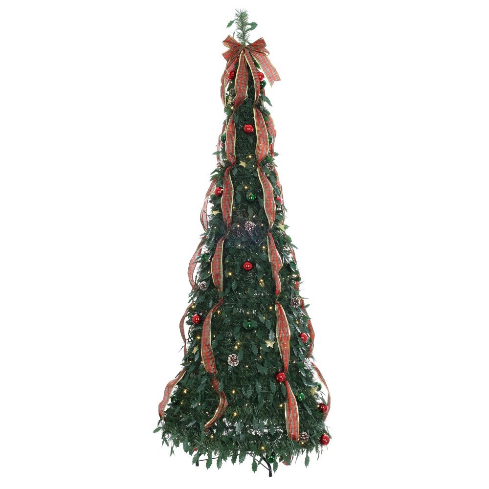 Ёлка искусств с подсвет от сети, L80 W80 H210, 200LED, 48 шаров +6 бант+24 шишки, экспресс сборка
