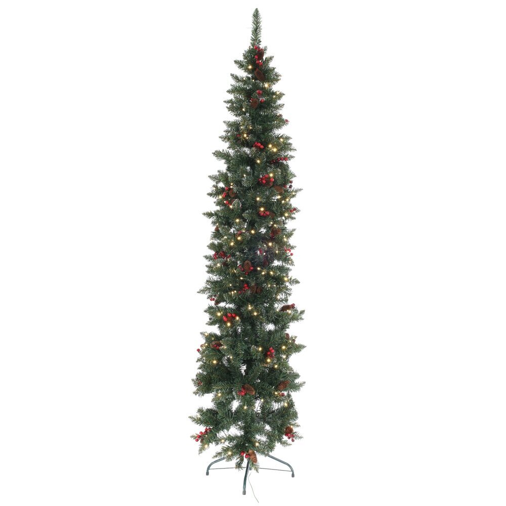 Ёлка искусств с подсвет (шишки+ягоды), D55 H210 см, 300 LED, тепл бел, 8 реж, от сети, провод 2,1м