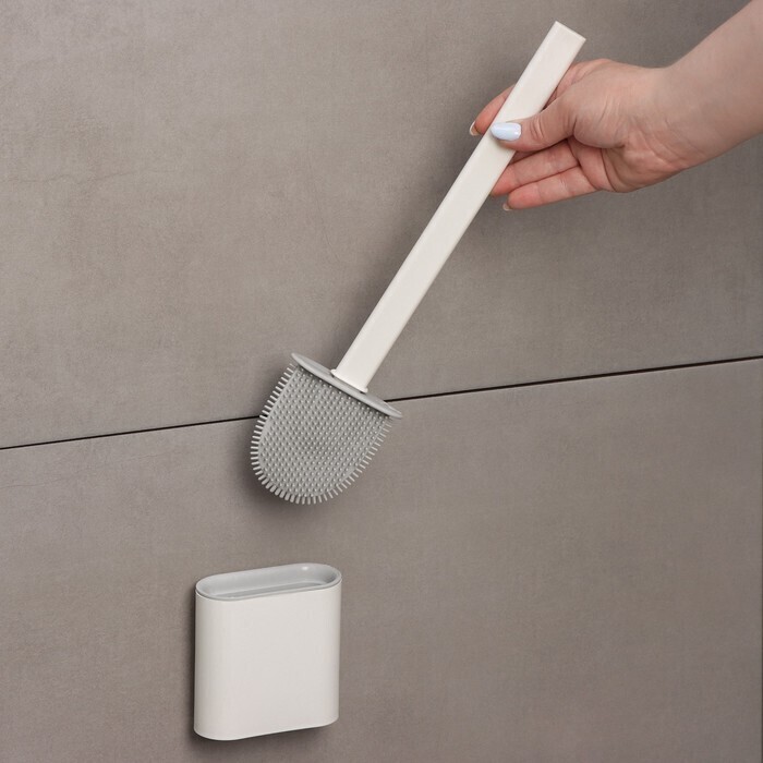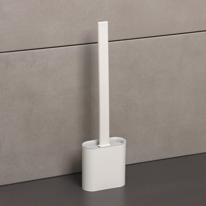 !09 Ёршик для унитаза силиконовый с емкостью «Лилу», 4,3×9,5×36 см, цвет белый